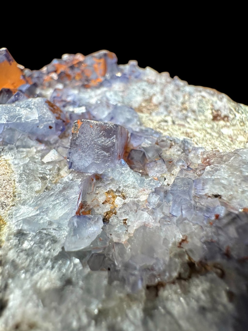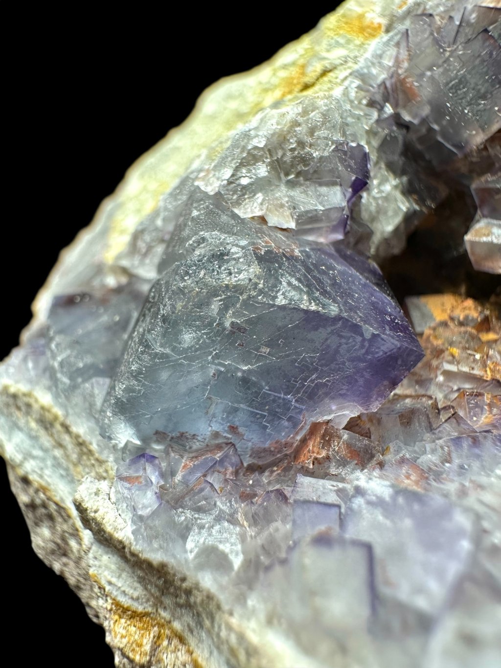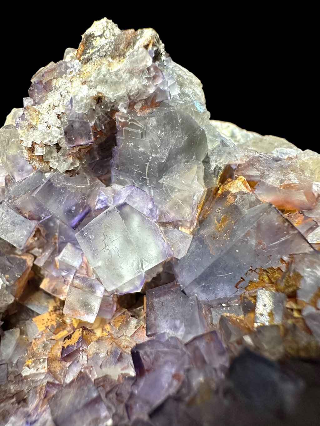 Fluorite aus Tinejdad zeichnen sich durch eine große Farbvielfalt aus – von hellviolett und grauviolett bis hin zu grünlichen oder honigfarbenen Tönen. Die Farbe ändert sich oft je nach Betrachtungswinkel oder Lichtverhältnissen. Die Kristalle sind meist kubisch, mit feinen zonalen Übergängen oder Einschlüssen anderer Minerale.
