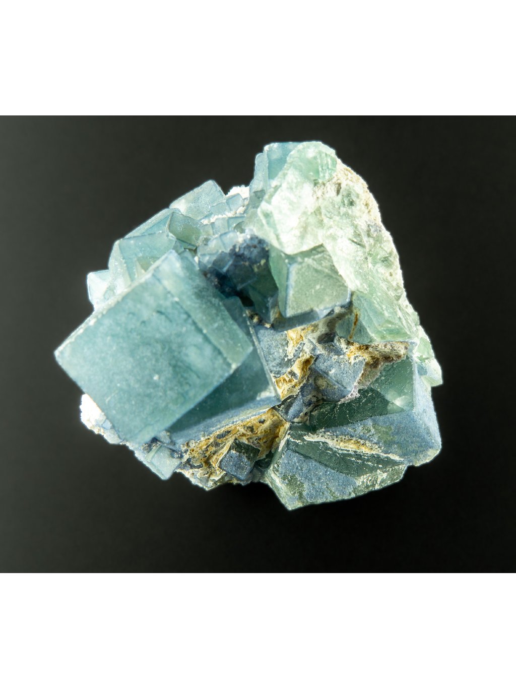 Fluorit: Kürzlich entdeckte Proben von Fluorit aus der Huanggang-Mine weisen oft außergewöhnliche Farben und Kristallformen auf. Diese Proben können eine Vielzahl von Farben aufweisen, darunter grün, violett, blau und manchmal auch mehrfarbige Kombinationen. Fluorit von dieser Fundstelle ist für seine hervorragende Transparenz und seinen Glanz bekannt und bildet häufig kubische und oktaedrische Kristalle. Fluorit wird häufig auf einem Gesteinsstück gefunden, das in der Regel aus einem weißen Substrat wie Calcit oder Quarz besteht. Dieses weiße Substrat bildet einen kontrastreichen Hintergrund für die Fluoritkristalle, die unterschiedlich gefärbt sein können. Dieser Kontrasteffekt erhöht den optischen Reiz und den ästhetischen Wert dieser Fluoritproben.