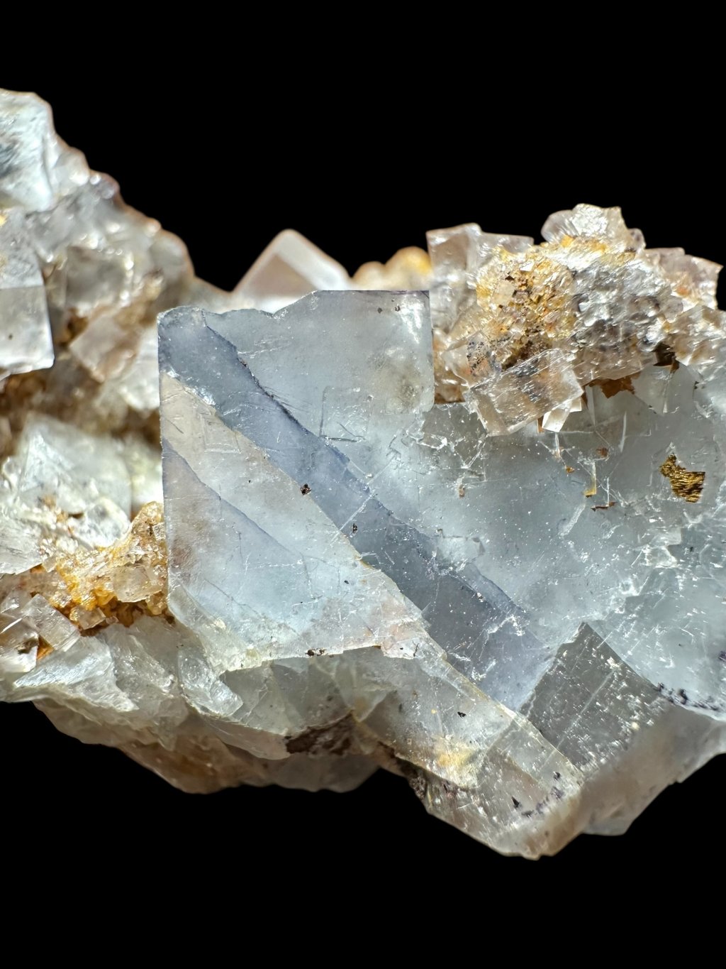 Fluorite aus Tinejdad zeichnen sich durch eine große Farbvielfalt aus – von hellviolett und grauviolett bis hin zu grünlichen oder honigfarbenen Tönen. Die Farbe ändert sich oft je nach Betrachtungswinkel oder Lichtverhältnissen. Die Kristalle sind meist kubisch, mit feinen zonalen Übergängen oder Einschlüssen anderer Minerale.