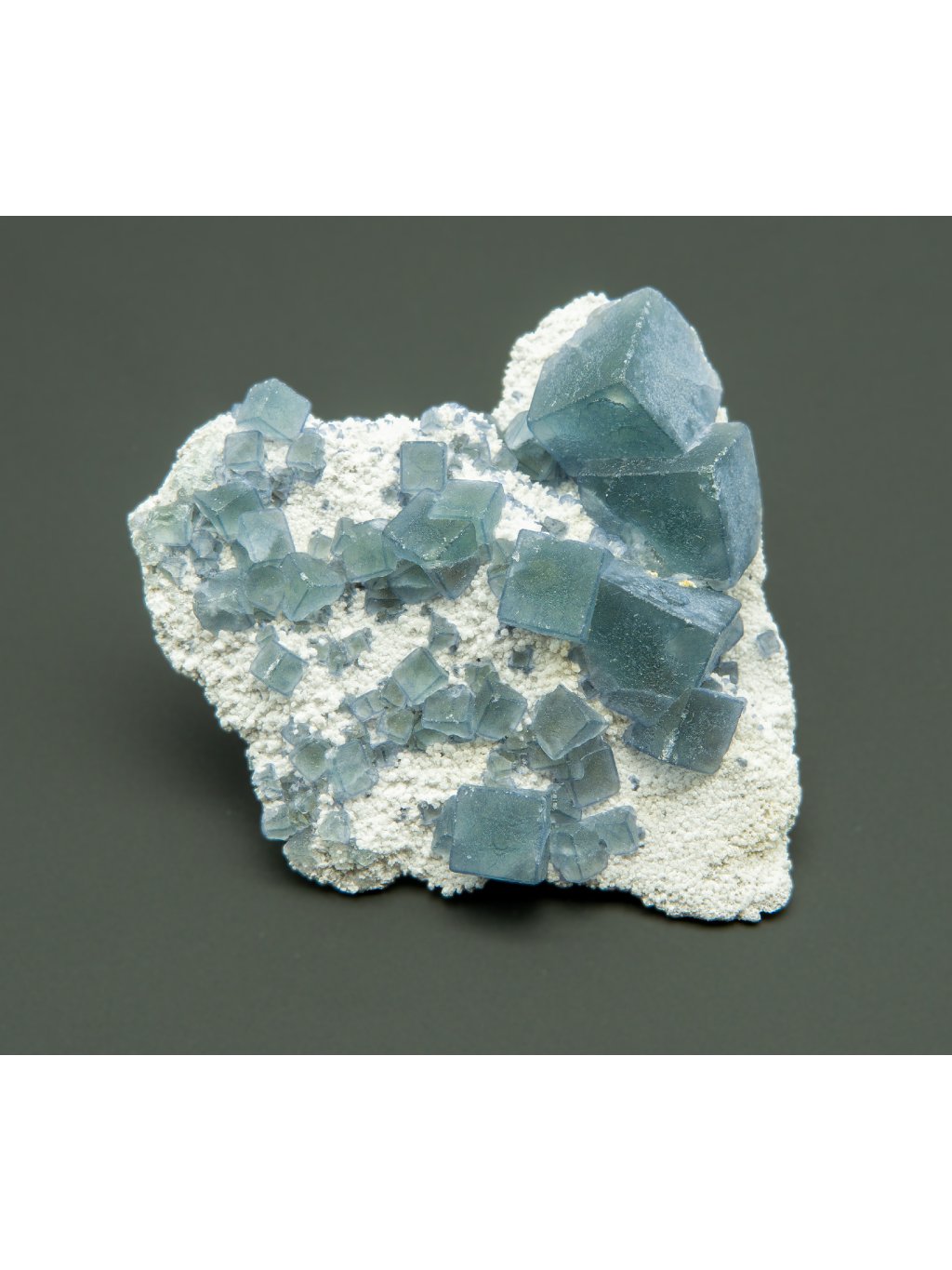 Fluorit: Kürzlich entdeckte Proben von Fluorit aus der Huanggang-Mine weisen oft außergewöhnliche Farben und Kristallformen auf. Diese Proben können eine Vielzahl von Farben aufweisen, darunter grün, violett, blau und manchmal auch mehrfarbige Kombinationen. Fluorit von dieser Fundstelle ist für seine hervorragende Transparenz und seinen Glanz bekannt und bildet häufig kubische und oktaedrische Kristalle. Fluorit wird häufig auf einem Gesteinsstück gefunden, das in der Regel aus einem weißen Substrat wie Calcit oder Quarz besteht. Dieses weiße Substrat bildet einen kontrastreichen Hintergrund für die Fluoritkristalle, die unterschiedlich gefärbt sein können. Dieser Kontrasteffekt erhöht den optischen Reiz und den ästhetischen Wert dieser Fluoritproben.