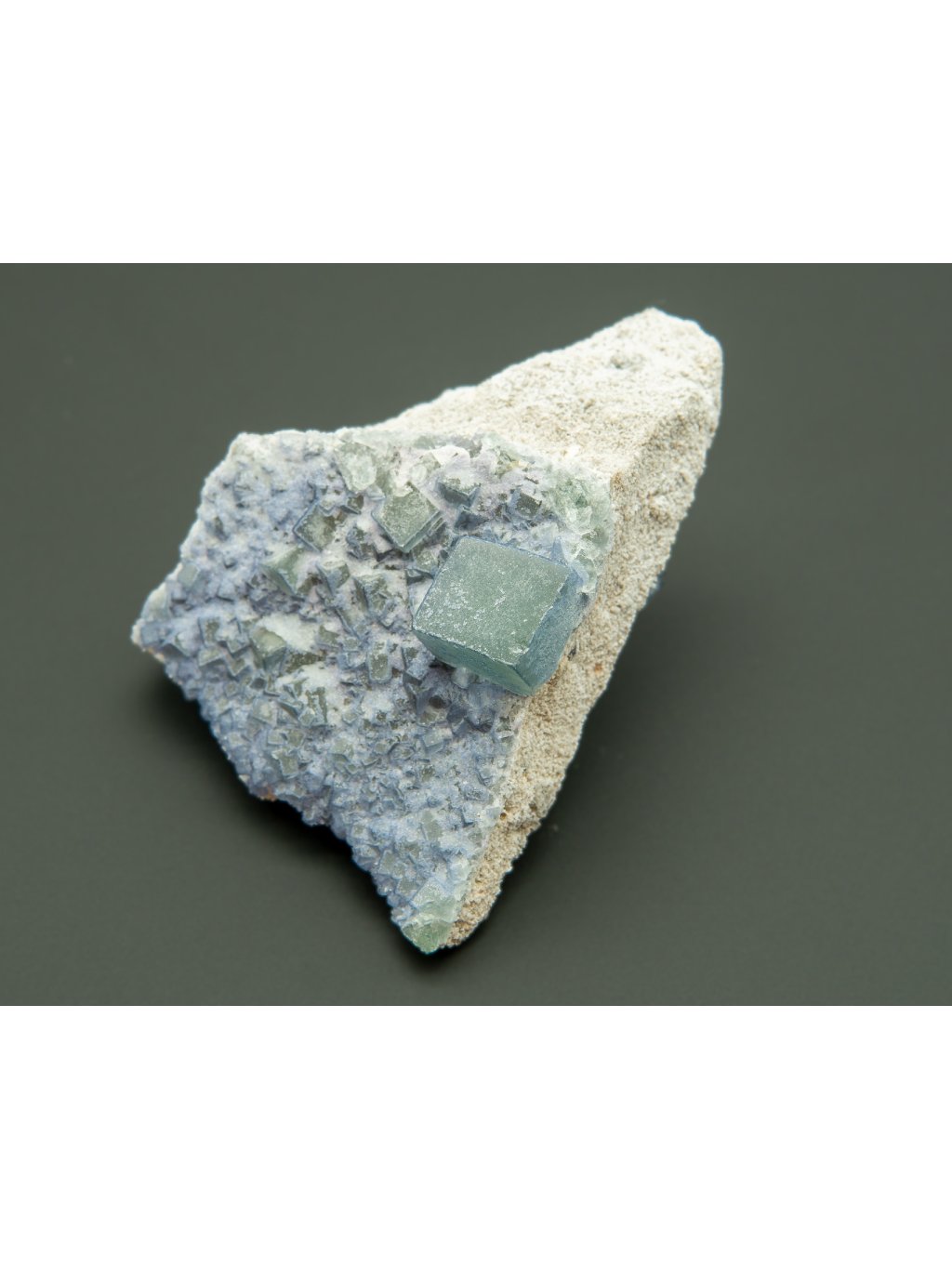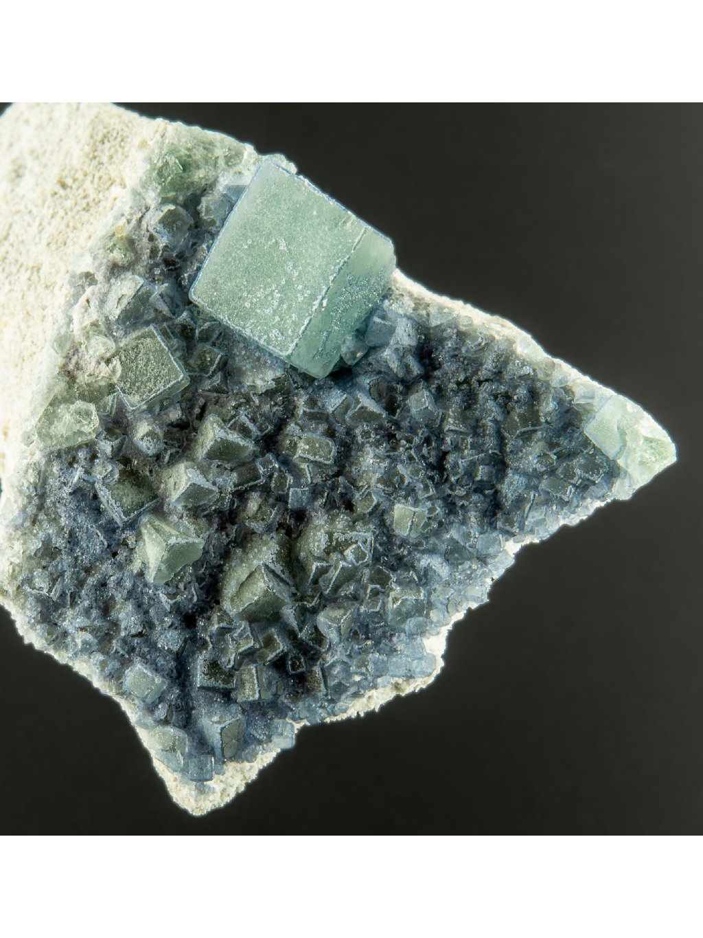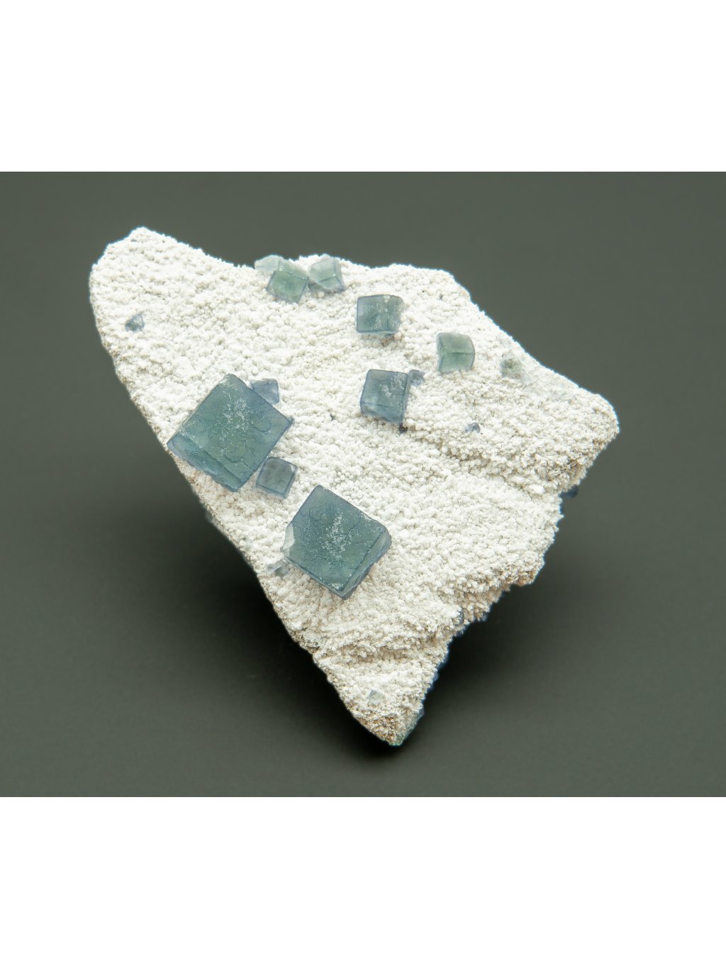 Fluorit: Kürzlich entdeckte Proben von Fluorit aus der Huanggang-Mine weisen oft außergewöhnliche Farben und Kristallformen auf. Diese Proben können eine Vielzahl von Farben aufweisen, darunter grün, violett, blau und manchmal auch mehrfarbige Kombinationen. Fluorit von dieser Fundstelle ist für seine hervorragende Transparenz und seinen Glanz bekannt und bildet häufig kubische und oktaedrische Kristalle. Fluorit wird häufig auf einem Gesteinsstück gefunden, das in der Regel aus einem weißen Substrat wie Calcit oder Quarz besteht. Dieses weiße Substrat bildet einen kontrastreichen Hintergrund für die Fluoritkristalle, die unterschiedlich gefärbt sein können. Dieser Kontrasteffekt erhöht den optischen Reiz und den ästhetischen Wert dieser Fluoritproben.