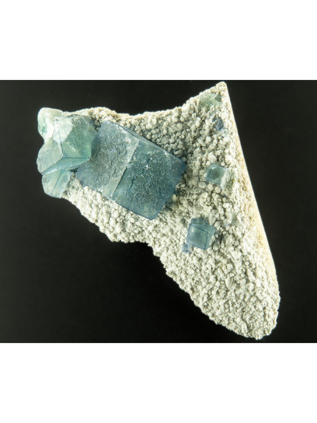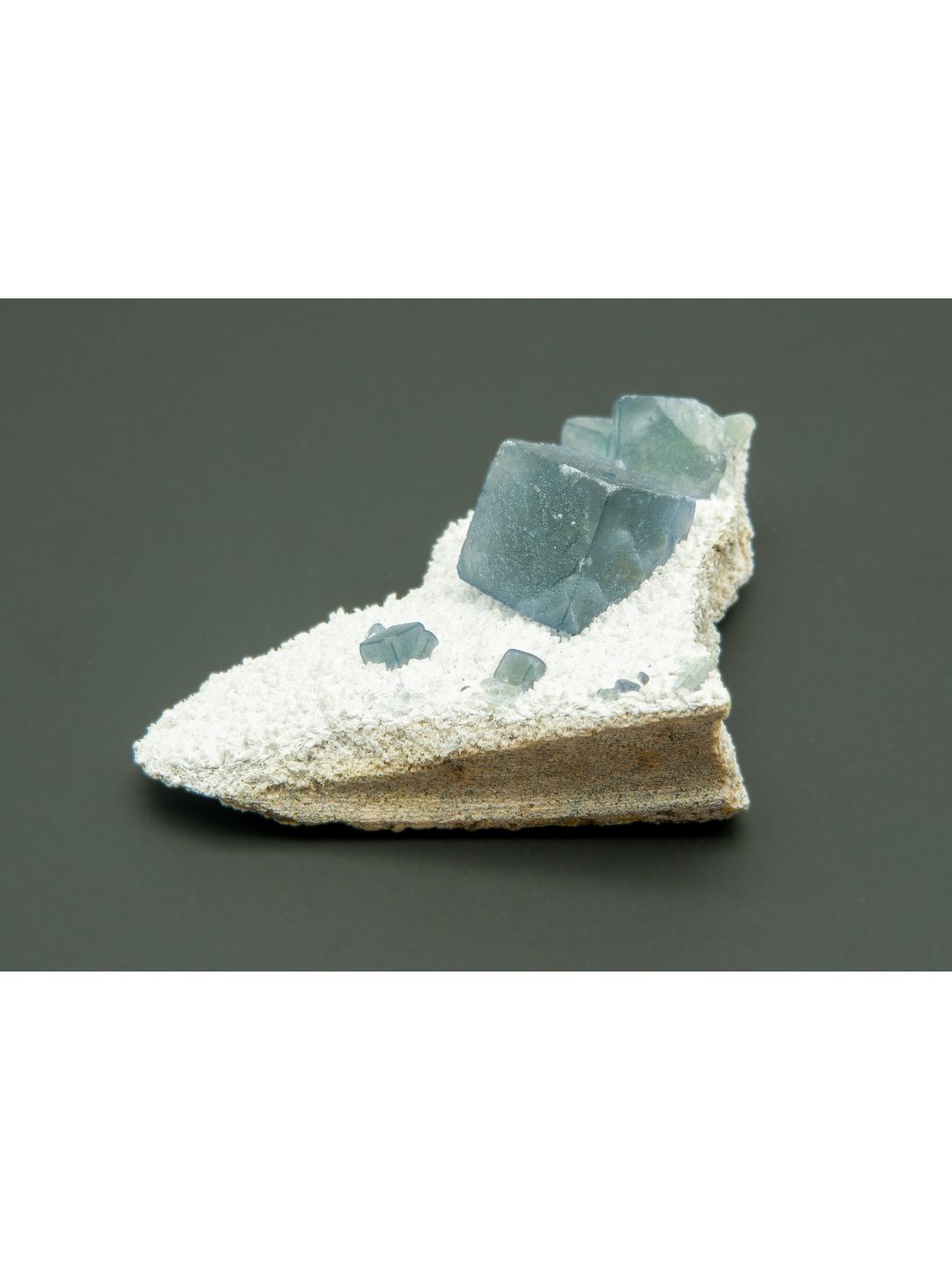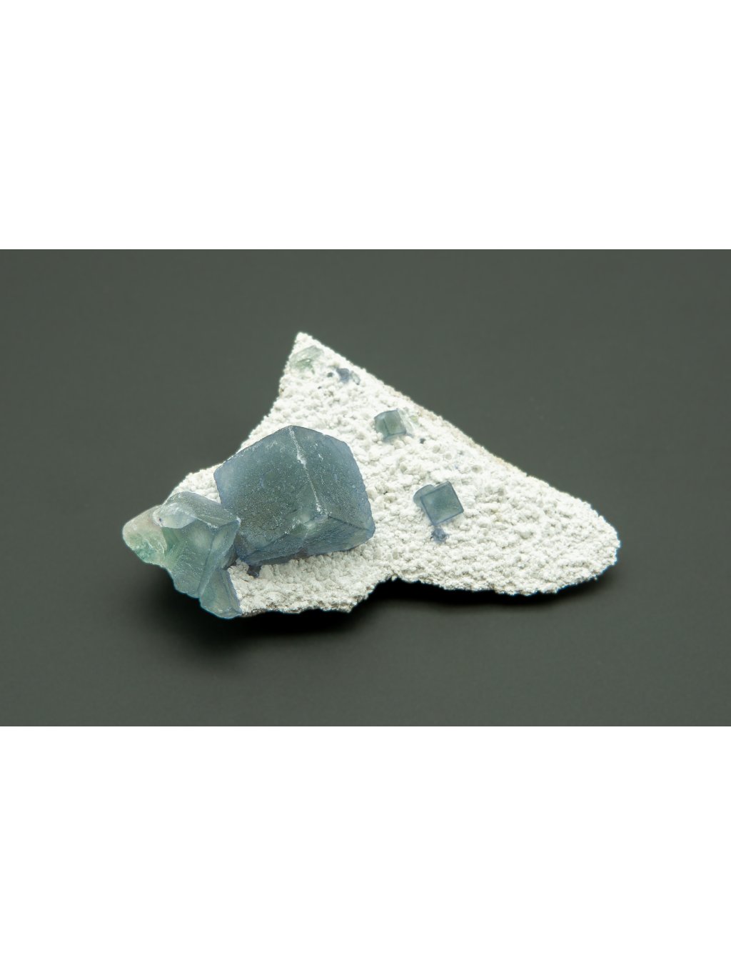 Fluorit: Kürzlich entdeckte Proben von Fluorit aus der Huanggang-Mine weisen oft außergewöhnliche Farben und Kristallformen auf. Diese Proben können eine Vielzahl von Farben aufweisen, darunter grün, violett, blau und manchmal auch mehrfarbige Kombinationen. Fluorit von dieser Fundstelle ist für seine hervorragende Transparenz und seinen Glanz bekannt und bildet häufig kubische und oktaedrische Kristalle. Fluorit wird häufig auf einem Gesteinsstück gefunden, das in der Regel aus einem weißen Substrat wie Calcit oder Quarz besteht. Dieses weiße Substrat bildet einen kontrastreichen Hintergrund für die Fluoritkristalle, die unterschiedlich gefärbt sein können. Dieser Kontrasteffekt erhöht den optischen Reiz und den ästhetischen Wert dieser Fluoritproben.