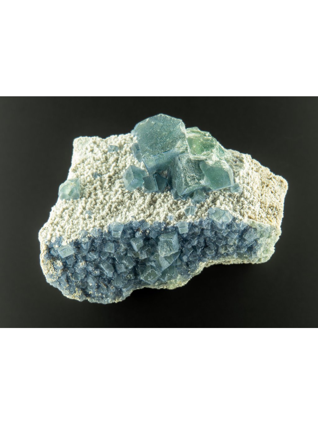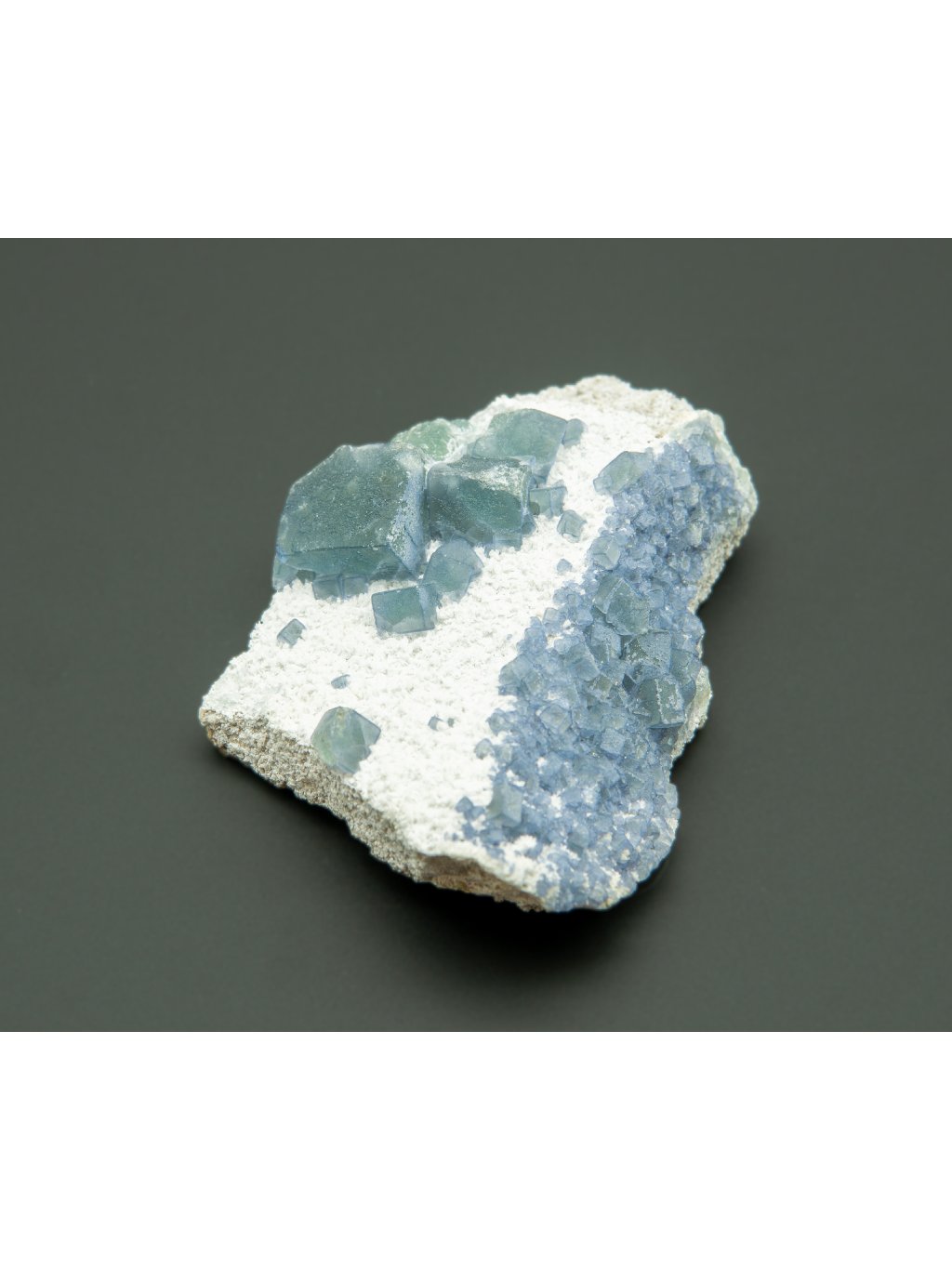 Fluorit: Kürzlich entdeckte Proben von Fluorit aus der Huanggang-Mine weisen oft außergewöhnliche Farben und Kristallformen auf. Diese Proben können eine Vielzahl von Farben aufweisen, darunter grün, violett, blau und manchmal auch mehrfarbige Kombinationen. Fluorit von dieser Fundstelle ist für seine hervorragende Transparenz und seinen Glanz bekannt und bildet häufig kubische und oktaedrische Kristalle. Fluorit wird häufig auf einem Gesteinsstück gefunden, das in der Regel aus einem weißen Substrat wie Calcit oder Quarz besteht. Dieses weiße Substrat bildet einen kontrastreichen Hintergrund für die Fluoritkristalle, die unterschiedlich gefärbt sein können. Dieser Kontrasteffekt erhöht den optischen Reiz und den ästhetischen Wert dieser Fluoritproben.