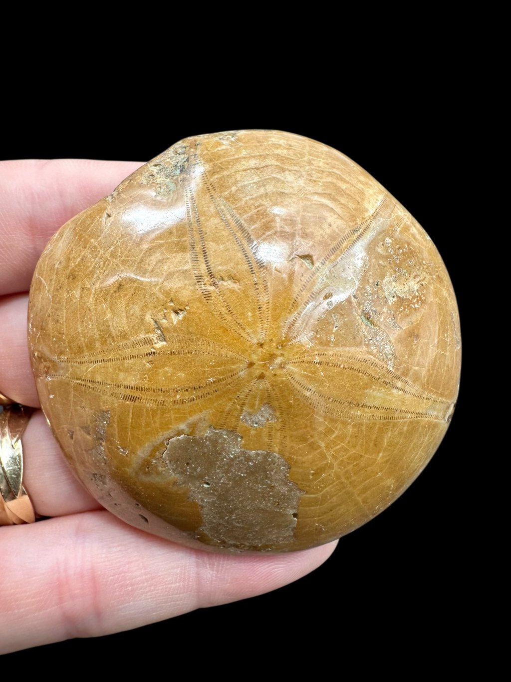 Scutella ist eine Gattung fossiler Seeigel, die im Eozän (vor ca. 56–34 Millionen Jahren) lebten. Sie zeichnen sich durch ihre flache, scheibenförmige Gestalt und eine deutlich erkennbare fünfstrahlige Symmetrie aus, die an erhaltenen Exemplaren gut sichtbar bleibt.