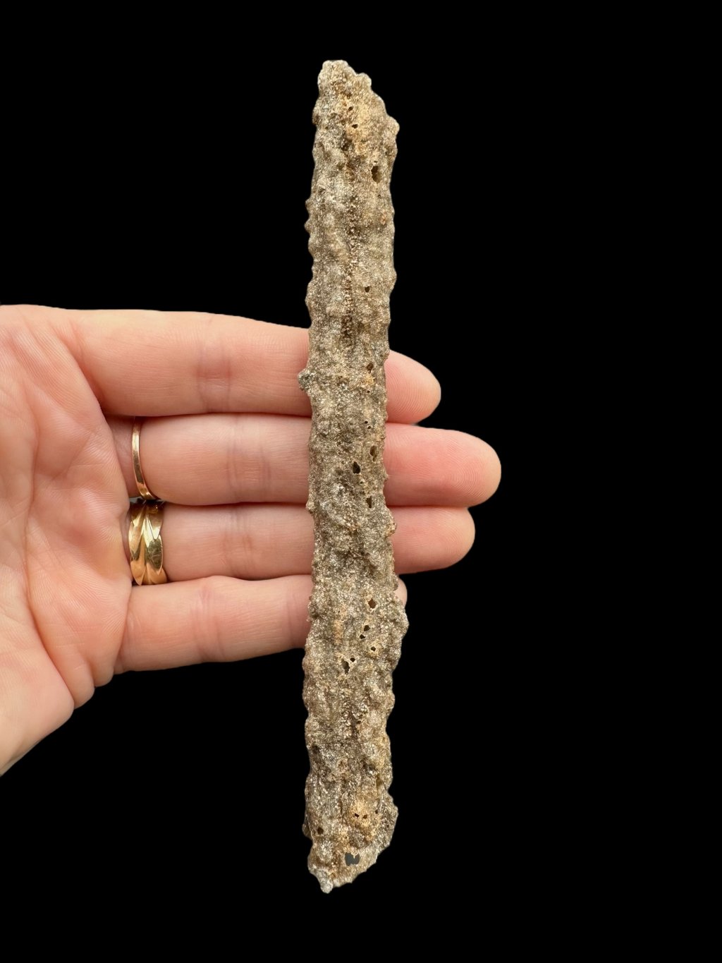 Die Innenwände von Fulguriten sind mit einer glasartigen Schicht überzogen, die durch das Schmelzen von Sand entsteht. An der Außenfläche sind Spuren von teilweise geschmolzenen Sandkörnern sichtbar. Fulgurite sind relativ zerbrechlich und brechen leicht, was das Sammeln größerer Stücke erschwert und ihren Preis erhöht.