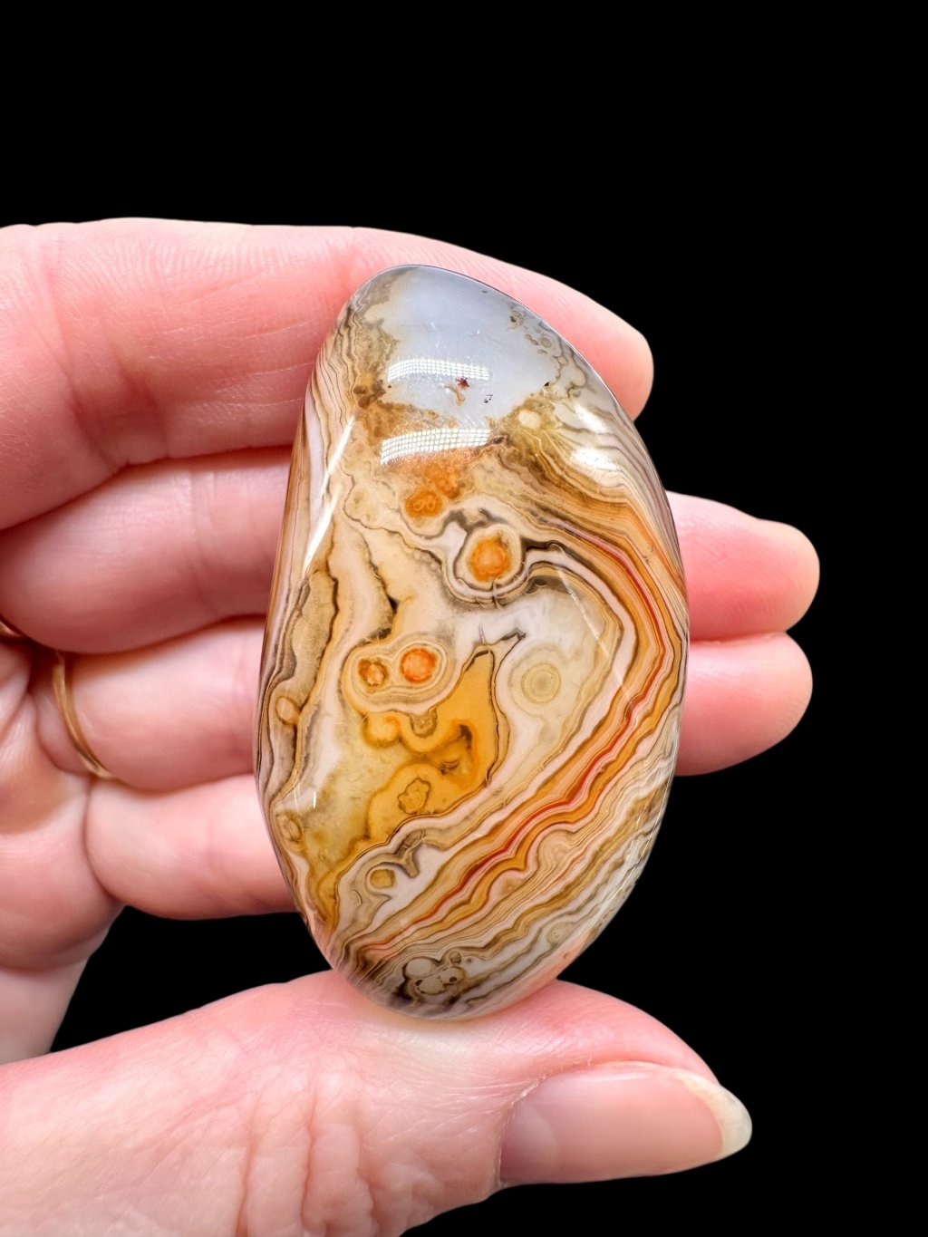 Einige Achate können erhitzt werden, um ihre natürliche Farbe zu verstärken. Beim Erhitzen wandeln sich weniger stabile Eisenformen in Hämatit um, was zu intensiveren roten und orangefarbenen Tönen führt. Dieser Prozess ist in der Gemmologie üblich und verändert die grundlegende mineralische Zusammensetzung des Steins nicht. Die resultierende Farbe ist dauerhaft und stabil.