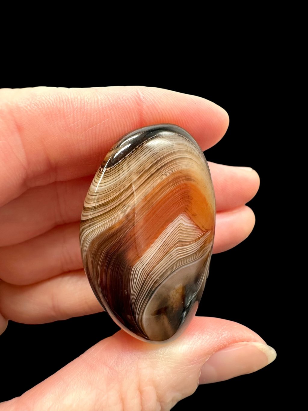 Einige Achate können erhitzt werden, um ihre natürliche Farbe zu verstärken. Beim Erhitzen wandeln sich weniger stabile Eisenformen in Hämatit um, was zu intensiveren roten und orangefarbenen Tönen führt. Dieser Prozess ist in der Gemmologie üblich und verändert die grundlegende mineralische Zusammensetzung des Steins nicht. Die resultierende Farbe ist dauerhaft und stabil.