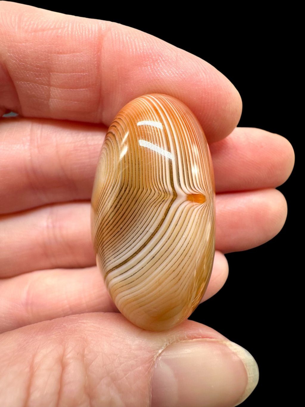 Einige Achate können erhitzt werden, um ihre natürliche Farbe zu verstärken. Beim Erhitzen wandeln sich weniger stabile Eisenformen in Hämatit um, was zu intensiveren roten und orangefarbenen Tönen führt. Dieser Prozess ist in der Gemmologie üblich und verändert die grundlegende mineralische Zusammensetzung des Steins nicht. Die resultierende Farbe ist dauerhaft und stabil.
