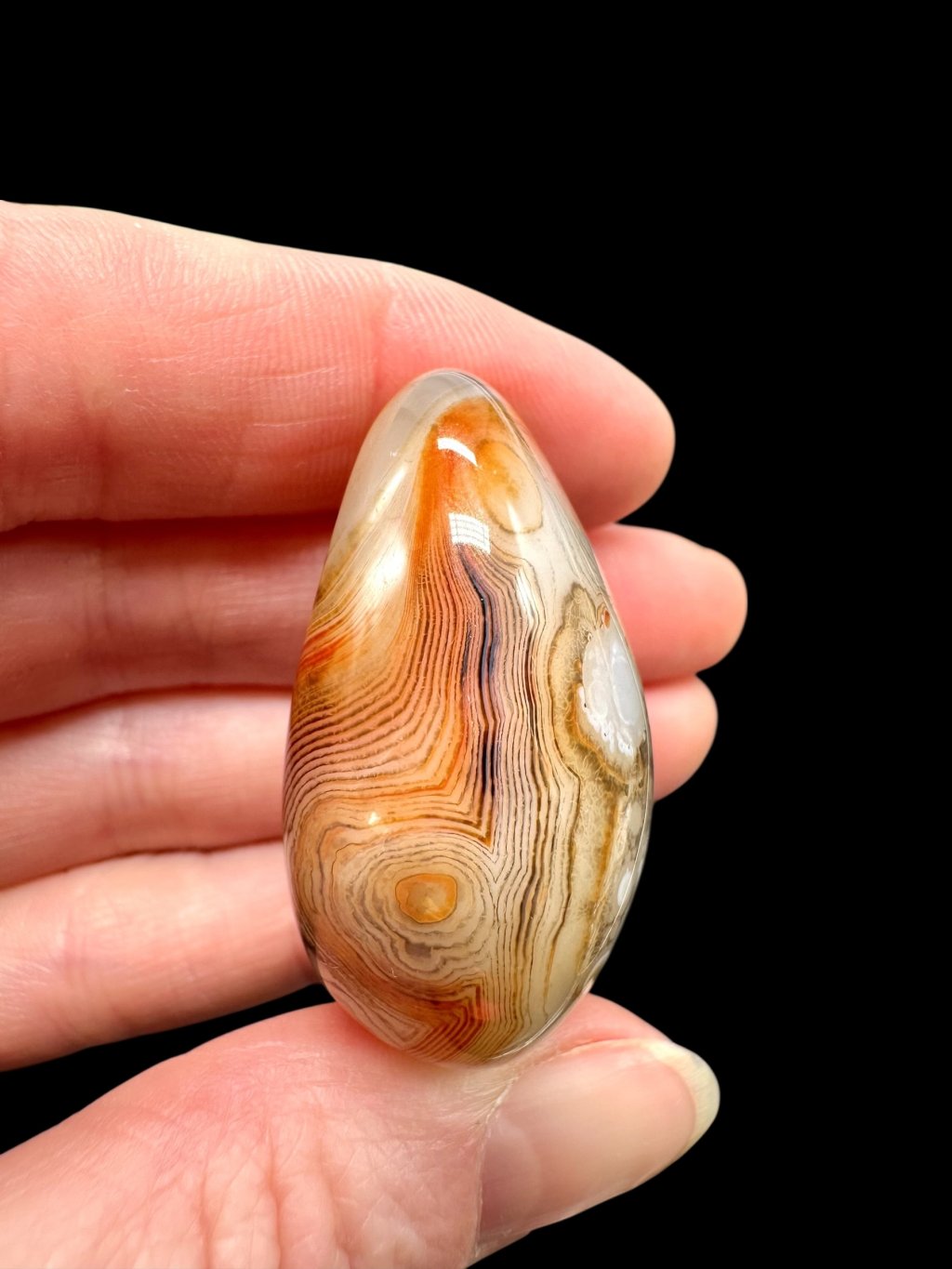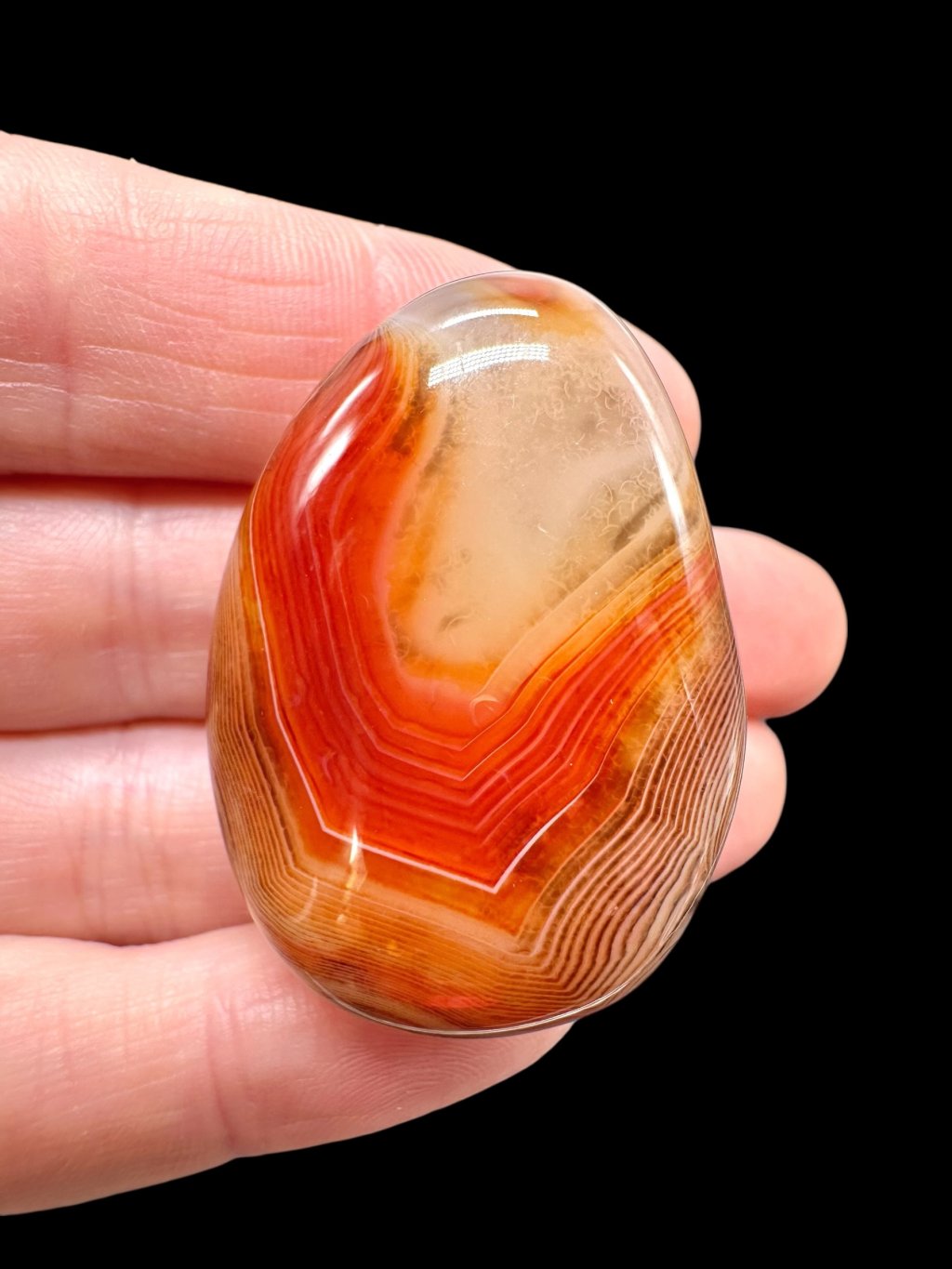 Einige Achate können erhitzt werden, um ihre natürliche Farbe zu verstärken. Beim Erhitzen wandeln sich weniger stabile Eisenformen in Hämatit um, was zu intensiveren roten und orangefarbenen Tönen führt. Dieser Prozess ist in der Gemmologie üblich und verändert die grundlegende mineralische Zusammensetzung des Steins nicht. Die resultierende Farbe ist dauerhaft und stabil.