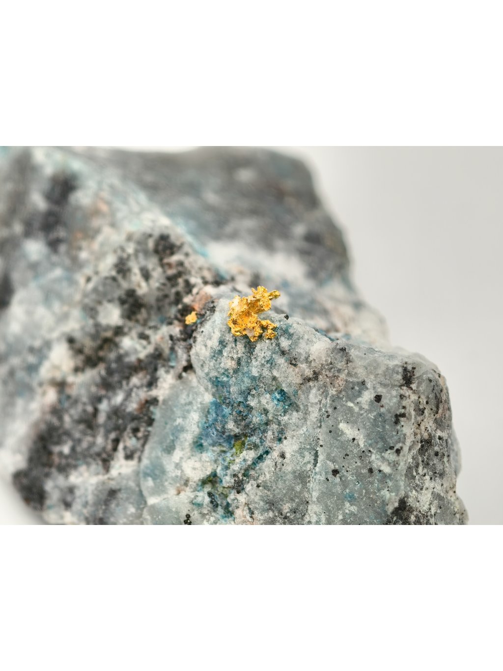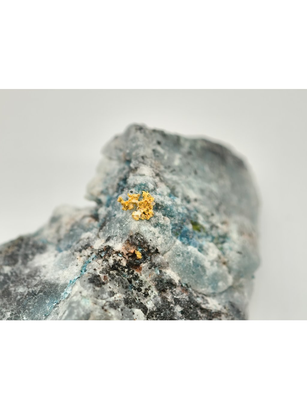 Dieses Stück ist ein kontrastreicher Fund von Gold auf blauer Matrix, die hauptsächlich aus Shattuckit besteht.