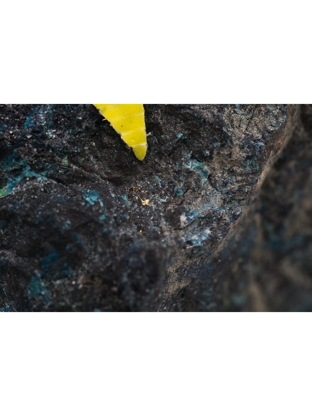 Dieses Stück ist ein kontrastreicher Fund von Gold auf blauer Matrix, die hauptsächlich aus Shattuckit besteht.