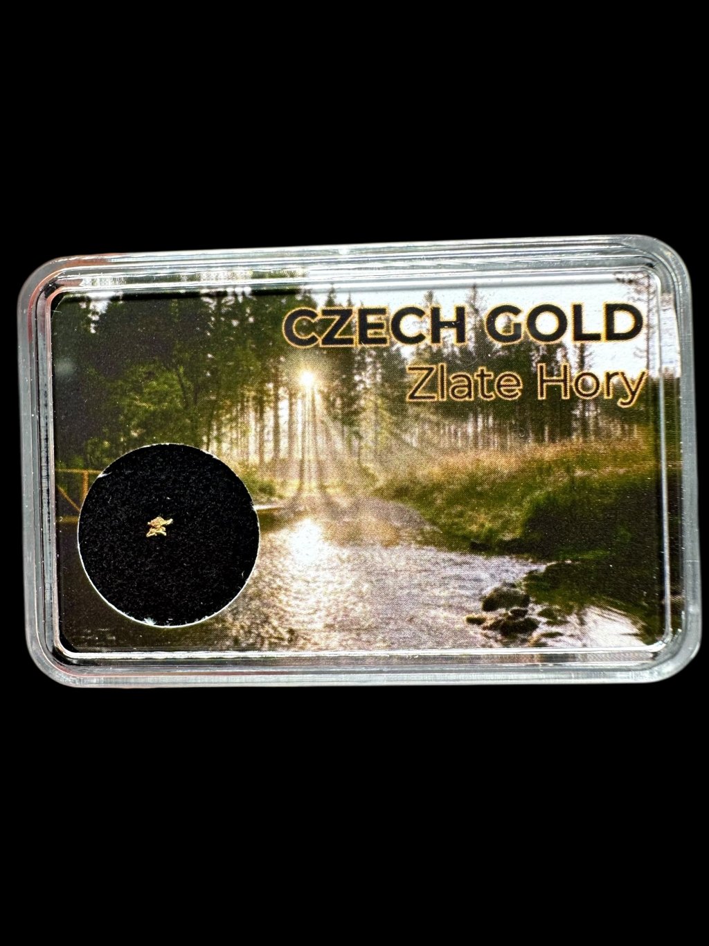 Gold auf Quarz in der Box – Zlate Hory, CZ