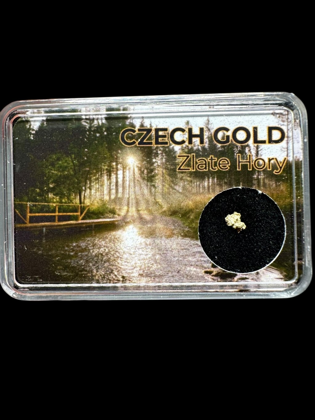 Gold auf Quarz in der Box – Zlate Hory, CZ