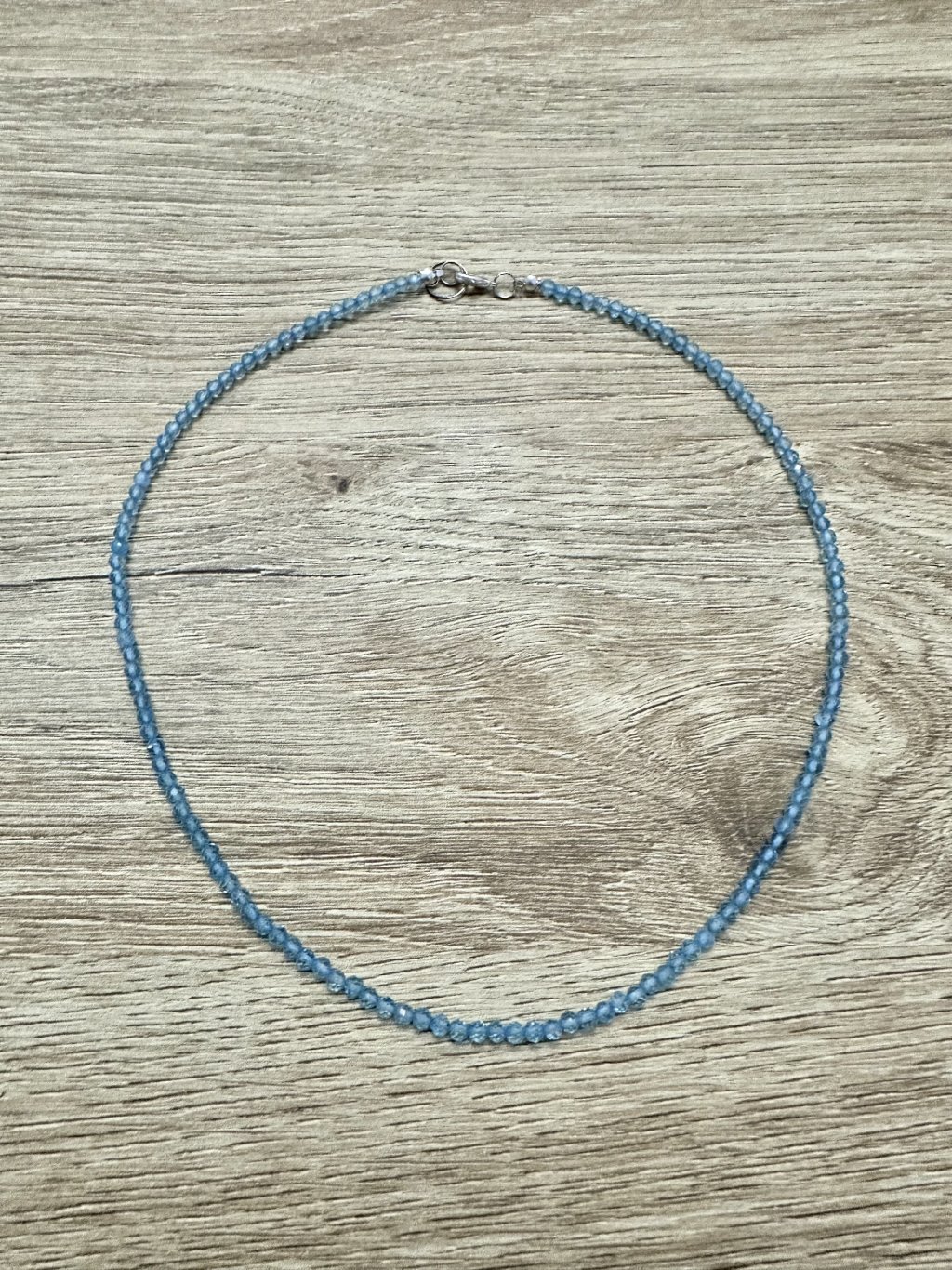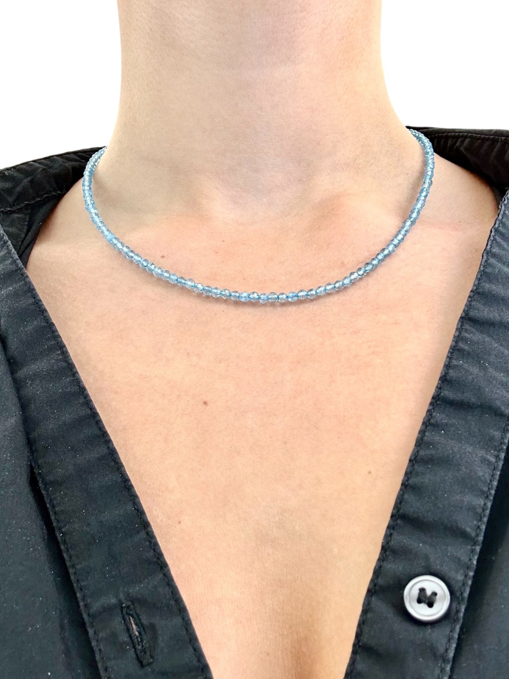 Halskette aus blauem Topas 3,5 mm – Facettierte Perlen