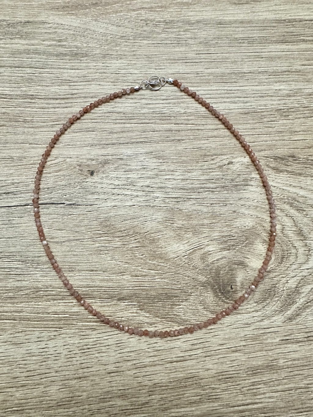 Halskette aus Sonnenstein 2 mm – Facettierte Perlen