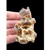 Tropfsteinkalzit ist eine besondere Form des Minerals Kalzit (CaCO₃), die in offenen Gesteinshohlräumen kristallisiert, vor allem in Kalksteinhöhlen. Er erinnert oft an natürliche Formationen wie Stalaktiten und Stalagmiten, besteht jedoch aus eigenständigen Kristallaggregaten. Diese können sternförmig, nadelförmig oder stachelig sein und ähneln oft Schneeflocken oder blumenartigen Formen. Die Kristalle weisen typischerweise einen glasartigen bis seidigen Glanz auf.