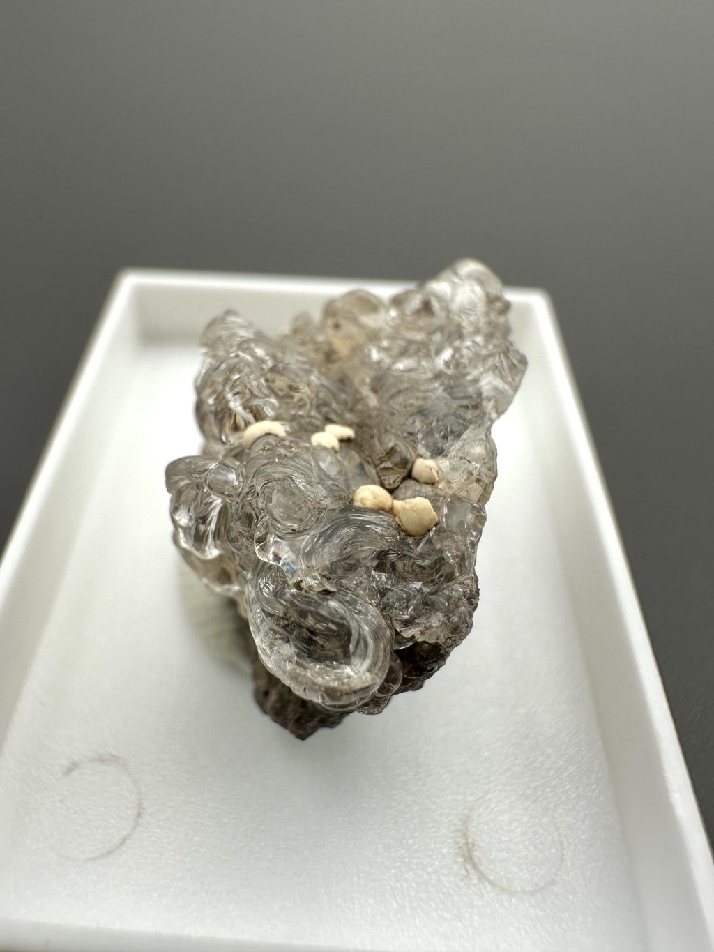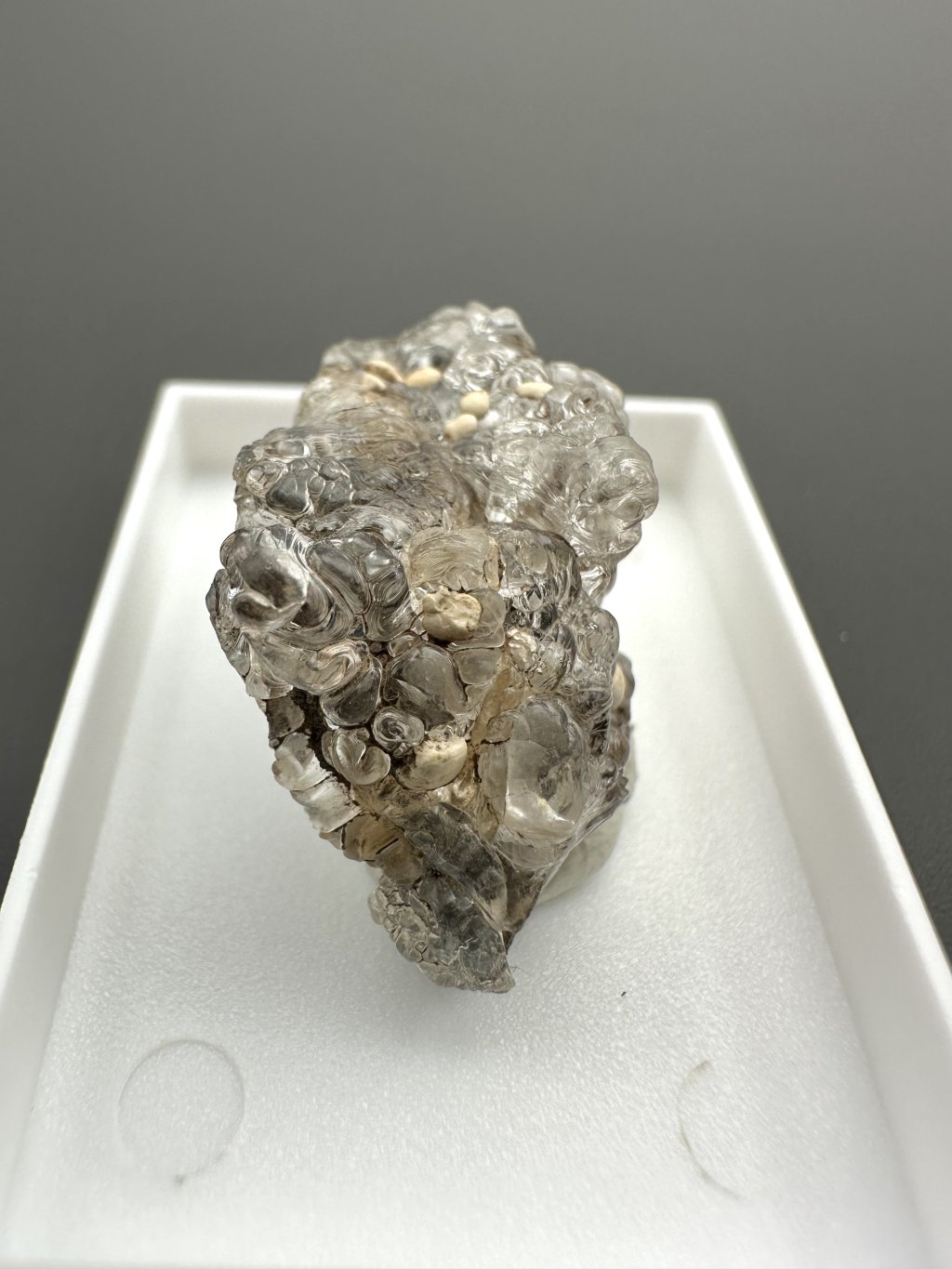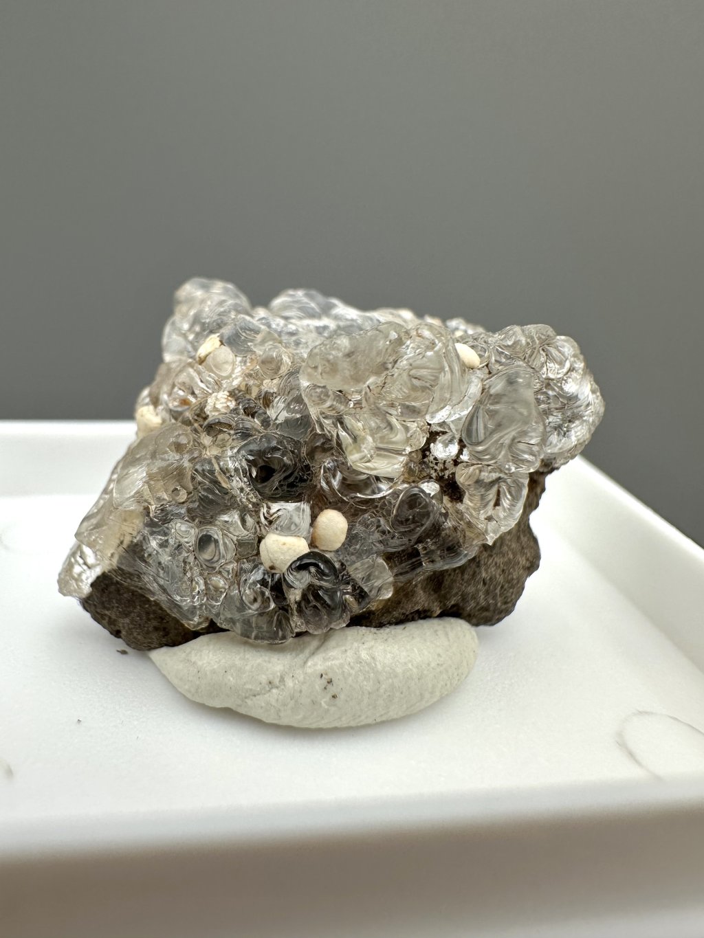 Hyalit, auch als Glasopal bekannt, ist eine Opalart, die sich durch ihre klare, farblose bis leicht gefärbte Struktur und ihren charakteristischen Glasglanz auszeichnet. Dieses Mineral besteht aus Kieselsäure (SiO₂) und enthält Wasser, was ihm seine einzigartigen Eigenschaften verleiht. Hyalit entsteht durch hydrothermale Prozesse nahe der Erdoberfläche, häufig in den Hohlräumen von Eruptivgestein wie Basalt. In der Tschechischen Republik gibt es ein bedeutendes Hyalitvorkommen in der Nähe von Valec, wo es in Form von trauben- oder stalaktitartigen Aggregaten auftritt.