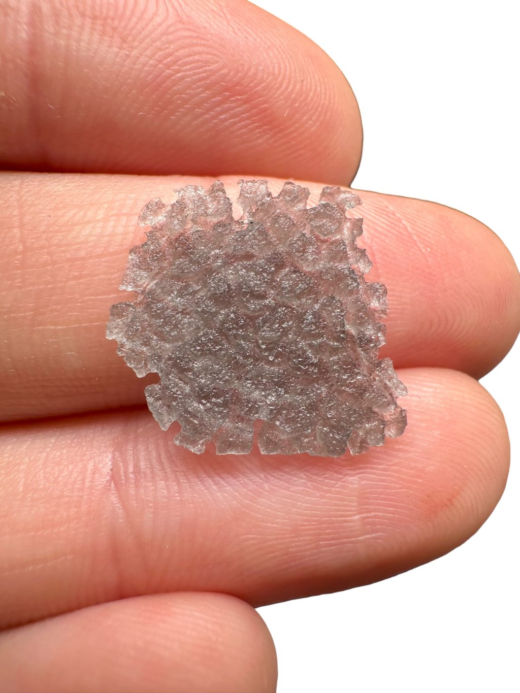 Dieser kürzlich entdeckte Obsidian-Typ gehört zu den schönsten Obsidiangesteinen der Welt. Er unterscheidet sich von anderen Obsidianarten durch seine ausgeprägt tiefe Struktur, die an südböhmische Moldavite erinnert (insbesondere an die Besednice Jezkovna). Seine Skulptur entstand durch schnelles Abkühlen, Aufreißen der Oberfläche und anschließende langsame Einwirkung von Bodensäuren an der jeweiligen Fundstelle – ähnlich wie bei Moldaviten. Die genaue Fundstelle wird derzeit aus Schutzgründen geheim gehalten, um Raubgrabungen und mögliche Zerstörungen der Landschaft zu verhindern. Wir glauben, dass das weltweite Interesse an diesem seltenen und ästhetisch ansprechenden Obsidian rapide zunehmen wird, sobald die genaue Lokalität offengelegt und wissenschaftlich untersucht wird – insbesondere aufgrund seines hohen Potenzials für die Verwendung in der Schmuckindustrie.