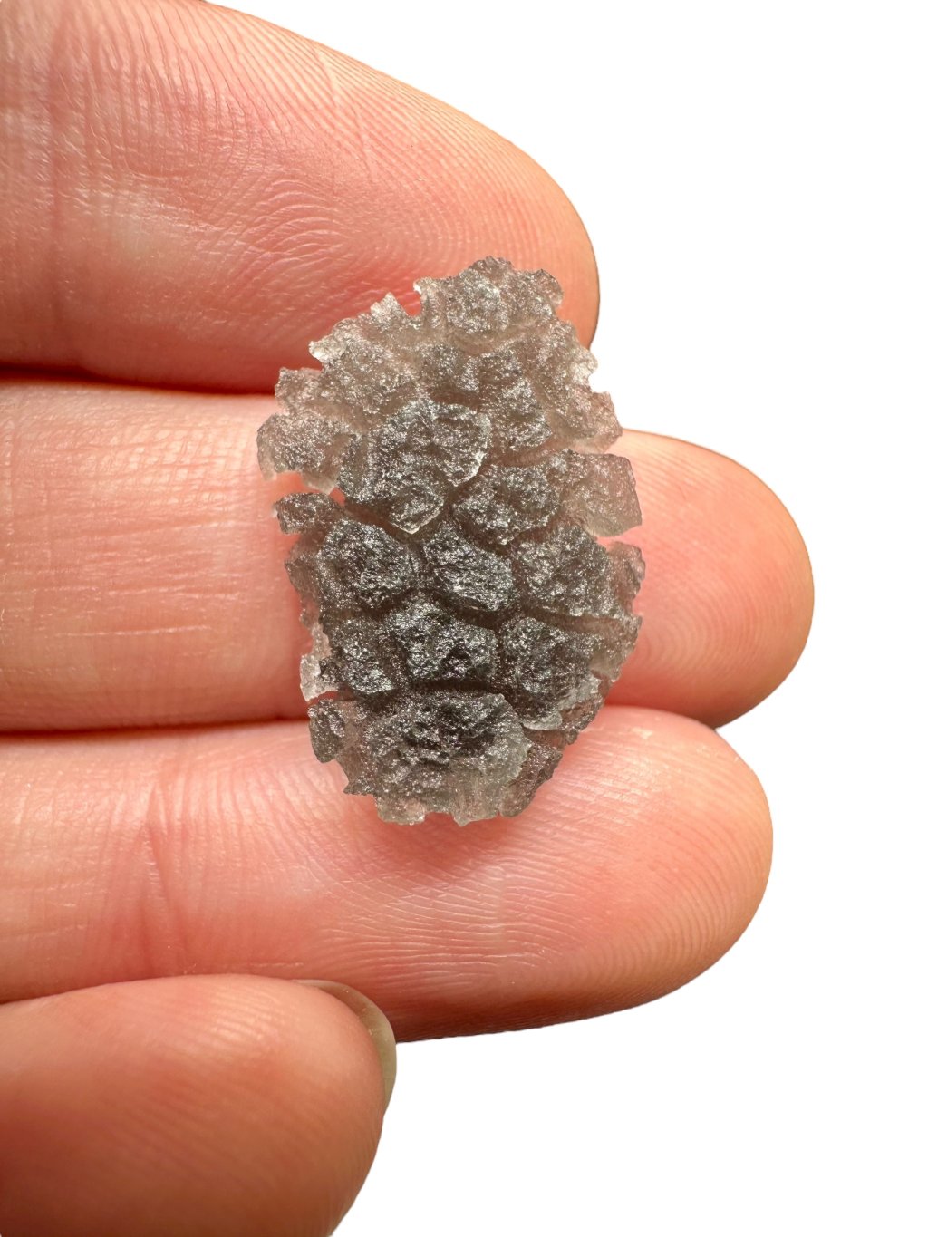 Dieser kürzlich entdeckte Obsidian-Typ gehört zu den schönsten Obsidiangesteinen der Welt. Er unterscheidet sich von anderen Obsidianarten durch seine ausgeprägt tiefe Struktur, die an südböhmische Moldavite erinnert (insbesondere an die Besednice Jezkovna). Seine Skulptur entstand durch schnelles Abkühlen, Aufreißen der Oberfläche und anschließende langsame Einwirkung von Bodensäuren an der jeweiligen Fundstelle – ähnlich wie bei Moldaviten. Die genaue Fundstelle wird derzeit aus Schutzgründen geheim gehalten, um Raubgrabungen und mögliche Zerstörungen der Landschaft zu verhindern. Wir glauben, dass das weltweite Interesse an diesem seltenen und ästhetisch ansprechenden Obsidian rapide zunehmen wird, sobald die genaue Lokalität offengelegt und wissenschaftlich untersucht wird – insbesondere aufgrund seines hohen Potenzials für die Verwendung in der Schmuckindustrie.