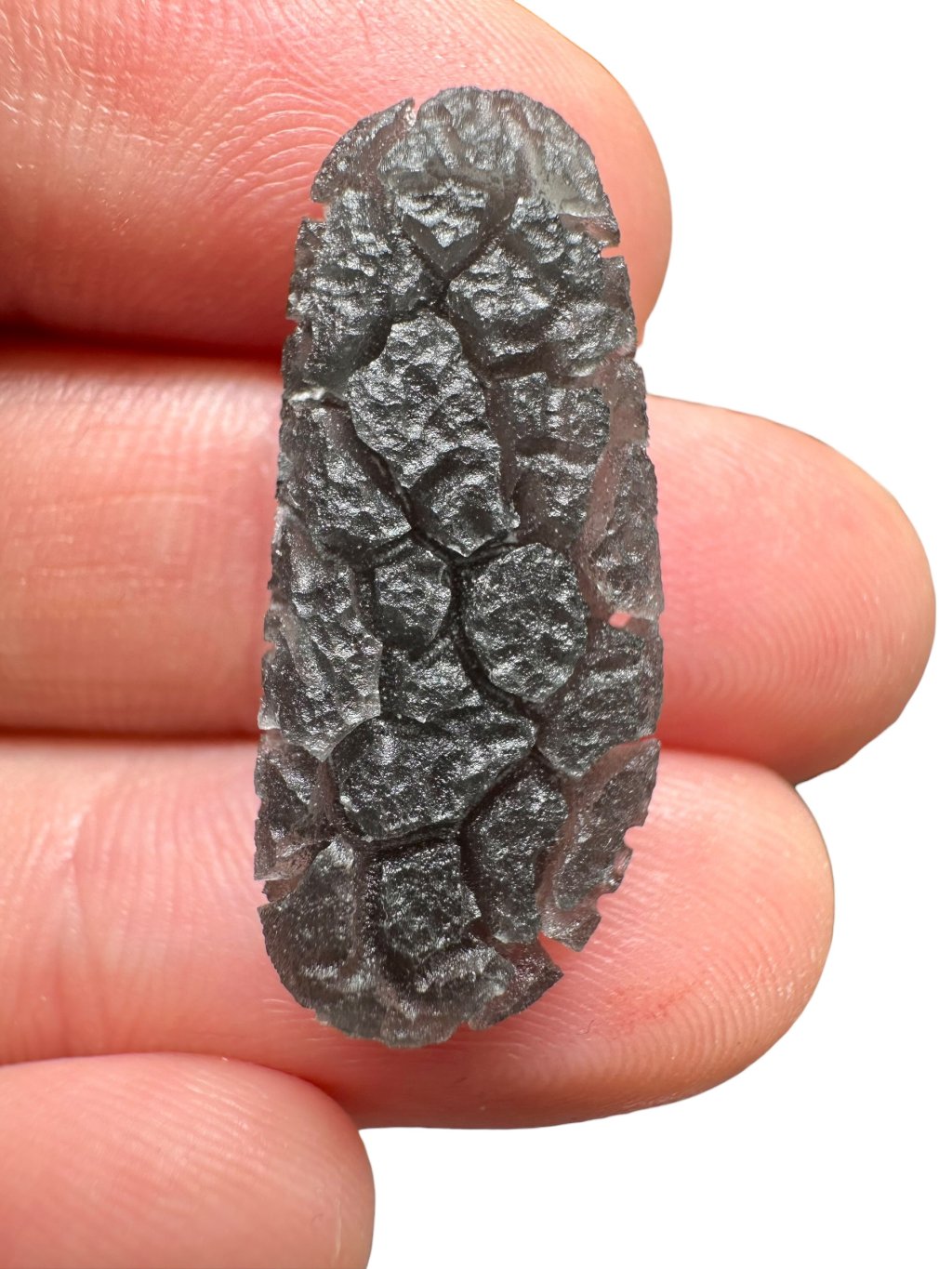 Dieser kürzlich entdeckte Obsidian-Typ gehört zu den schönsten Obsidiangesteinen der Welt. Er unterscheidet sich von anderen Obsidianarten durch seine ausgeprägt tiefe Struktur, die an südböhmische Moldavite erinnert (insbesondere an die Besednice Jezkovna). Seine Skulptur entstand durch schnelles Abkühlen, Aufreißen der Oberfläche und anschließende langsame Einwirkung von Bodensäuren an der jeweiligen Fundstelle – ähnlich wie bei Moldaviten. Die genaue Fundstelle wird derzeit aus Schutzgründen geheim gehalten, um Raubgrabungen und mögliche Zerstörungen der Landschaft zu verhindern. Wir glauben, dass das weltweite Interesse an diesem seltenen und ästhetisch ansprechenden Obsidian rapide zunehmen wird, sobald die genaue Lokalität offengelegt und wissenschaftlich untersucht wird – insbesondere aufgrund seines hohen Potenzials für die Verwendung in der Schmuckindustrie.