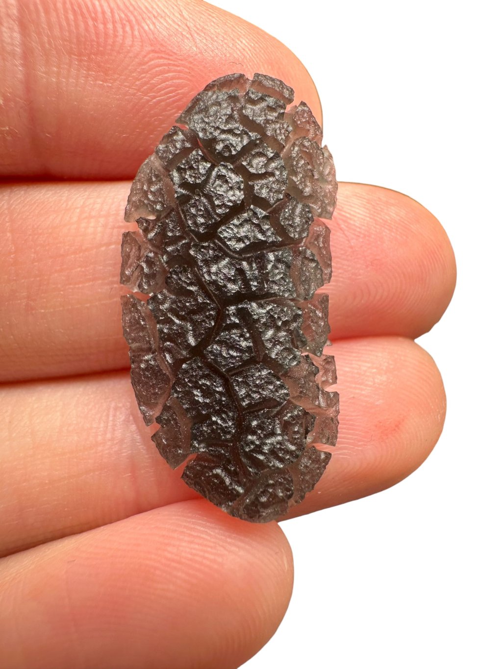 Dieser kürzlich entdeckte Obsidian-Typ gehört zu den schönsten Obsidiangesteinen der Welt. Er unterscheidet sich von anderen Obsidianarten durch seine ausgeprägt tiefe Struktur, die an südböhmische Moldavite erinnert (insbesondere an die Besednice Jezkovna). Seine Skulptur entstand durch schnelles Abkühlen, Aufreißen der Oberfläche und anschließende langsame Einwirkung von Bodensäuren an der jeweiligen Fundstelle – ähnlich wie bei Moldaviten. Die genaue Fundstelle wird derzeit aus Schutzgründen geheim gehalten, um Raubgrabungen und mögliche Zerstörungen der Landschaft zu verhindern. Wir glauben, dass das weltweite Interesse an diesem seltenen und ästhetisch ansprechenden Obsidian rapide zunehmen wird, sobald die genaue Lokalität offengelegt und wissenschaftlich untersucht wird – insbesondere aufgrund seines hohen Potenzials für die Verwendung in der Schmuckindustrie.