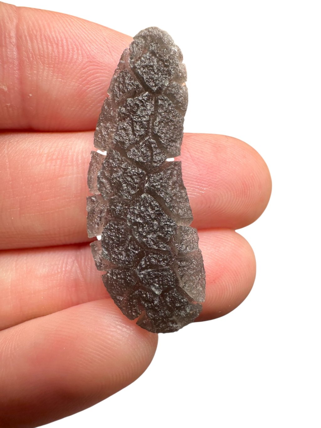 Dieser kürzlich entdeckte Obsidian-Typ gehört zu den schönsten Obsidiangesteinen der Welt. Er unterscheidet sich von anderen Obsidianarten durch seine ausgeprägt tiefe Struktur, die an südböhmische Moldavite erinnert (insbesondere an die Besednice Jezkovna). Seine Skulptur entstand durch schnelles Abkühlen, Aufreißen der Oberfläche und anschließende langsame Einwirkung von Bodensäuren an der jeweiligen Fundstelle – ähnlich wie bei Moldaviten. Die genaue Fundstelle wird derzeit aus Schutzgründen geheim gehalten, um Raubgrabungen und mögliche Zerstörungen der Landschaft zu verhindern. Wir glauben, dass das weltweite Interesse an diesem seltenen und ästhetisch ansprechenden Obsidian rapide zunehmen wird, sobald die genaue Lokalität offengelegt und wissenschaftlich untersucht wird – insbesondere aufgrund seines hohen Potenzials für die Verwendung in der Schmuckindustrie.