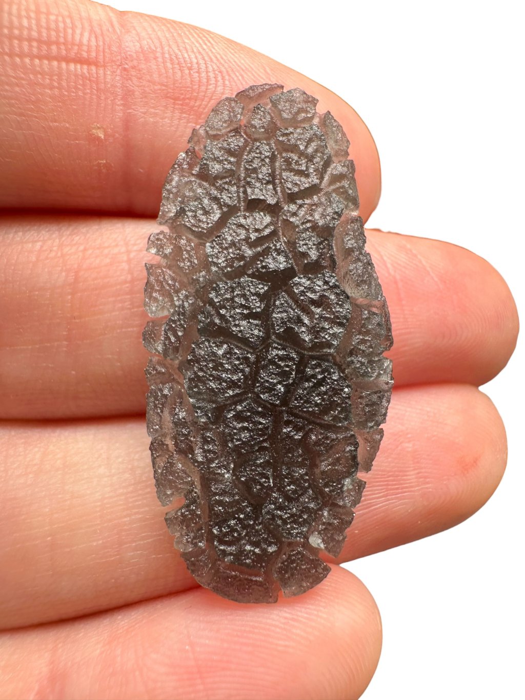 Dieser kürzlich entdeckte Obsidian-Typ gehört zu den schönsten Obsidiangesteinen der Welt. Er unterscheidet sich von anderen Obsidianarten durch seine ausgeprägt tiefe Struktur, die an südböhmische Moldavite erinnert (insbesondere an die Besednice Jezkovna). Seine Skulptur entstand durch schnelles Abkühlen, Aufreißen der Oberfläche und anschließende langsame Einwirkung von Bodensäuren an der jeweiligen Fundstelle – ähnlich wie bei Moldaviten. Die genaue Fundstelle wird derzeit aus Schutzgründen geheim gehalten, um Raubgrabungen und mögliche Zerstörungen der Landschaft zu verhindern. Wir glauben, dass das weltweite Interesse an diesem seltenen und ästhetisch ansprechenden Obsidian rapide zunehmen wird, sobald die genaue Lokalität offengelegt und wissenschaftlich untersucht wird – insbesondere aufgrund seines hohen Potenzials für die Verwendung in der Schmuckindustrie.