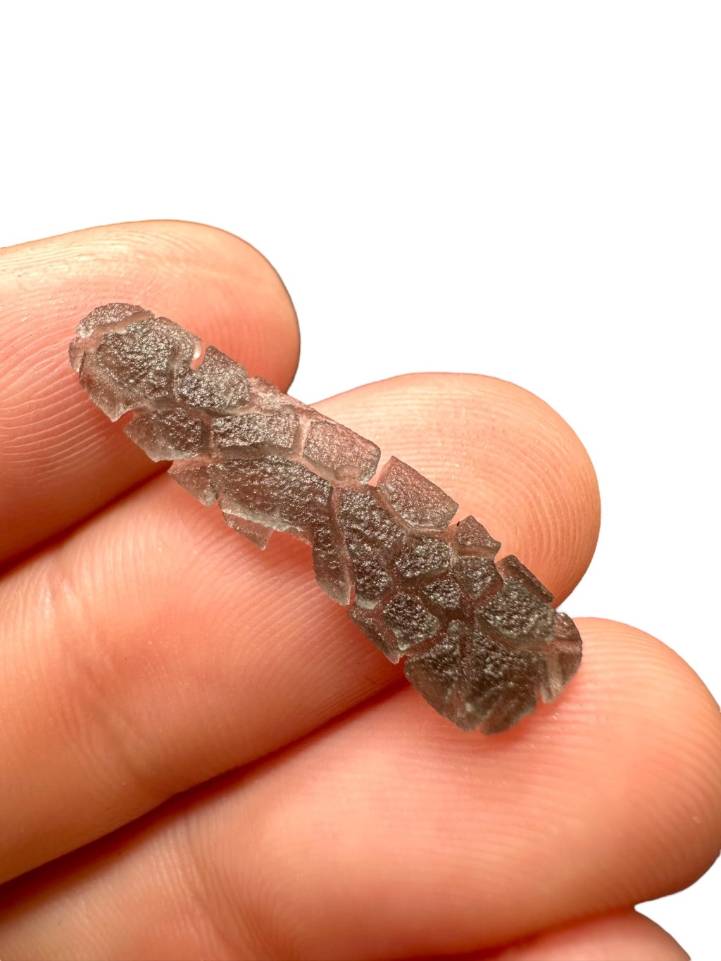 Dieser kürzlich entdeckte Obsidian-Typ gehört zu den schönsten Obsidiangesteinen der Welt. Er unterscheidet sich von anderen Obsidianarten durch seine ausgeprägt tiefe Struktur, die an südböhmische Moldavite erinnert (insbesondere an die Besednice Jezkovna). Seine Skulptur entstand durch schnelles Abkühlen, Aufreißen der Oberfläche und anschließende langsame Einwirkung von Bodensäuren an der jeweiligen Fundstelle – ähnlich wie bei Moldaviten. Die genaue Fundstelle wird derzeit aus Schutzgründen geheim gehalten, um Raubgrabungen und mögliche Zerstörungen der Landschaft zu verhindern. Wir glauben, dass das weltweite Interesse an diesem seltenen und ästhetisch ansprechenden Obsidian rapide zunehmen wird, sobald die genaue Lokalität offengelegt und wissenschaftlich untersucht wird – insbesondere aufgrund seines hohen Potenzials für die Verwendung in der Schmuckindustrie.