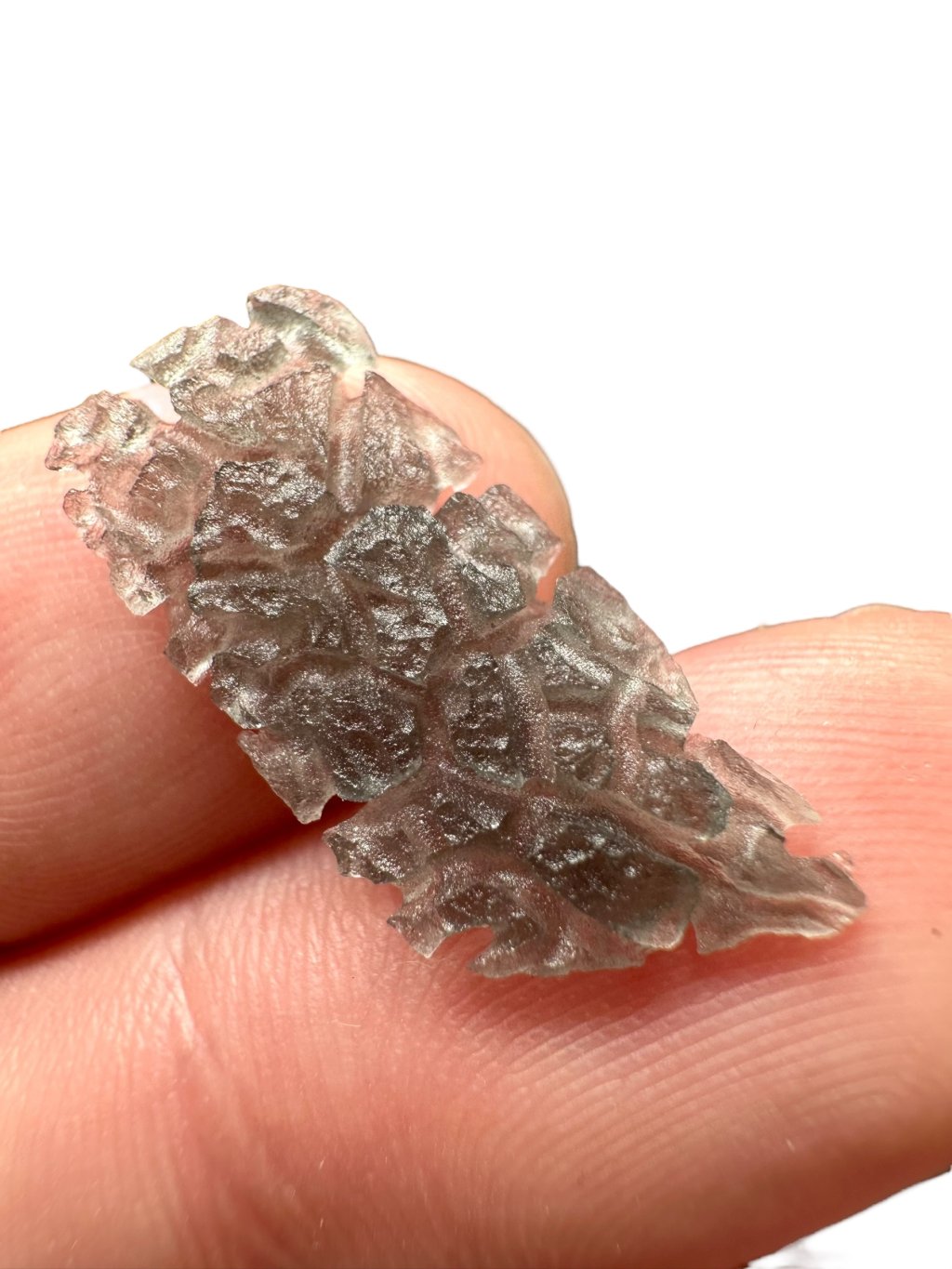 Dieser kürzlich entdeckte Obsidian-Typ gehört zu den schönsten Obsidiangesteinen der Welt. Er unterscheidet sich von anderen Obsidianarten durch seine ausgeprägt tiefe Struktur, die an südböhmische Moldavite erinnert (insbesondere an die Besednice Jezkovna). Seine Skulptur entstand durch schnelles Abkühlen, Aufreißen der Oberfläche und anschließende langsame Einwirkung von Bodensäuren an der jeweiligen Fundstelle – ähnlich wie bei Moldaviten. Die genaue Fundstelle wird derzeit aus Schutzgründen geheim gehalten, um Raubgrabungen und mögliche Zerstörungen der Landschaft zu verhindern. Wir glauben, dass das weltweite Interesse an diesem seltenen und ästhetisch ansprechenden Obsidian rapide zunehmen wird, sobald die genaue Lokalität offengelegt und wissenschaftlich untersucht wird – insbesondere aufgrund seines hohen Potenzials für die Verwendung in der Schmuckindustrie.