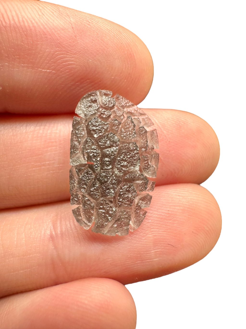 Dieser kürzlich entdeckte Obsidian-Typ gehört zu den schönsten Obsidiangesteinen der Welt. Er unterscheidet sich von anderen Obsidianarten durch seine ausgeprägt tiefe Struktur, die an südböhmische Moldavite erinnert (insbesondere an die Besednice Jezkovna). Seine Skulptur entstand durch schnelles Abkühlen, Aufreißen der Oberfläche und anschließende langsame Einwirkung von Bodensäuren an der jeweiligen Fundstelle – ähnlich wie bei Moldaviten. Die genaue Fundstelle wird derzeit aus Schutzgründen geheim gehalten, um Raubgrabungen und mögliche Zerstörungen der Landschaft zu verhindern. Wir glauben, dass das weltweite Interesse an diesem seltenen und ästhetisch ansprechenden Obsidian rapide zunehmen wird, sobald die genaue Lokalität offengelegt und wissenschaftlich untersucht wird – insbesondere aufgrund seines hohen Potenzials für die Verwendung in der Schmuckindustrie.