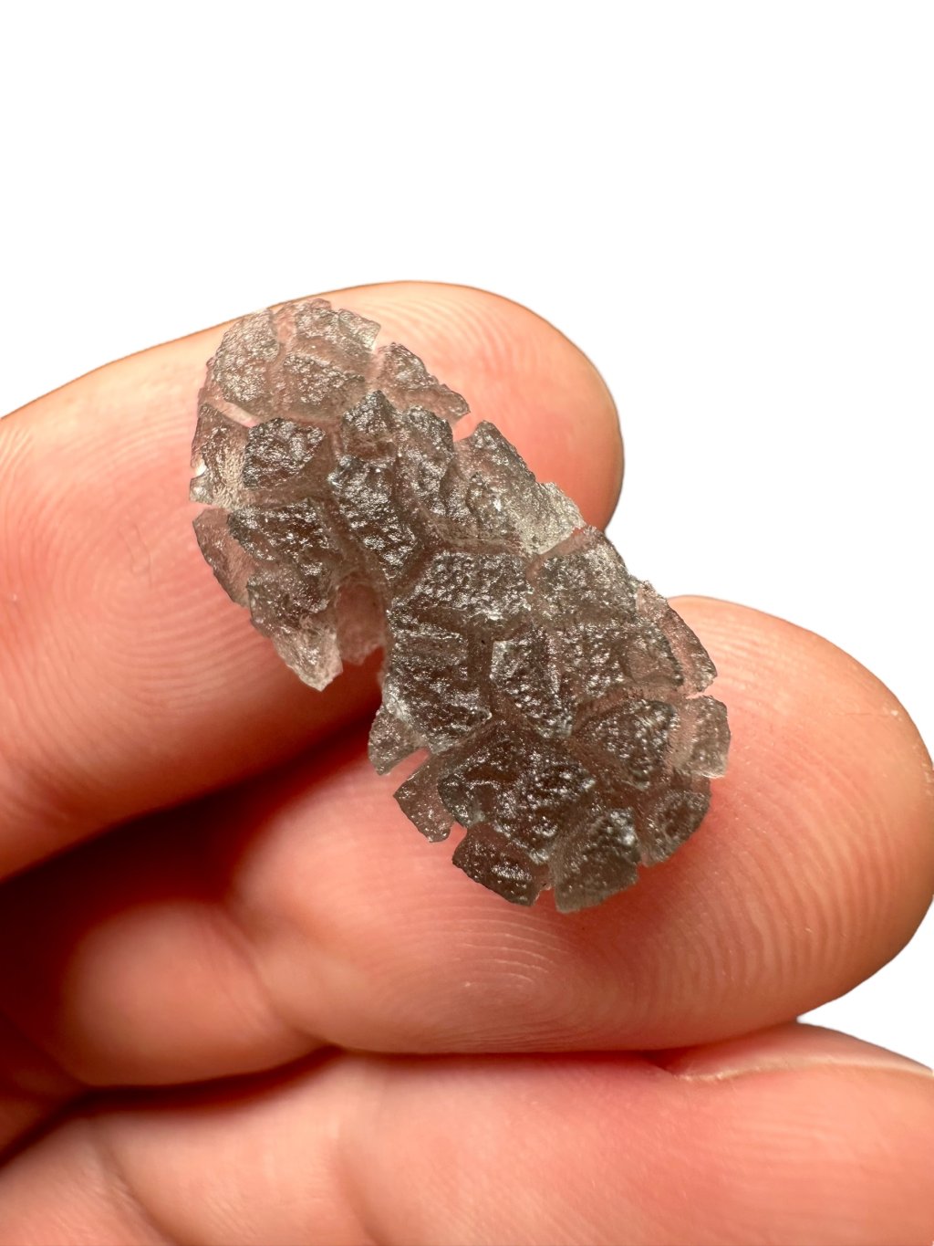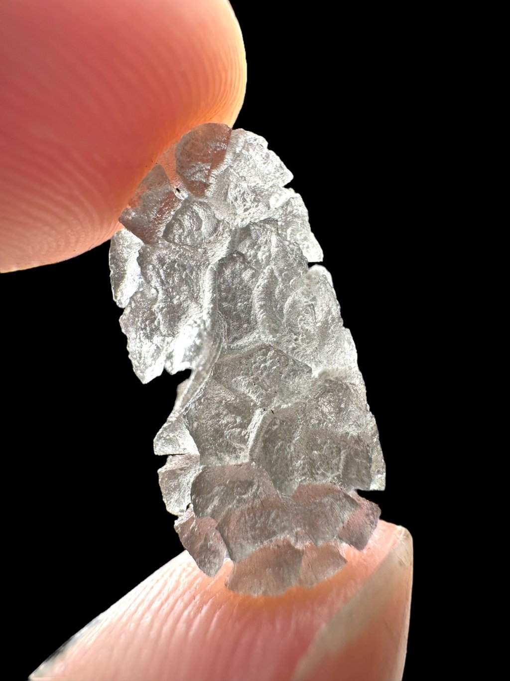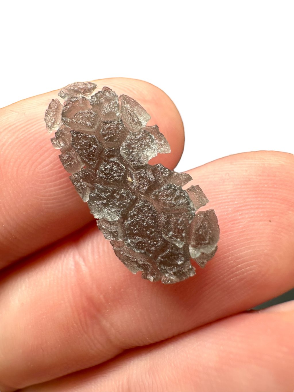 Dieser kürzlich entdeckte Obsidian-Typ gehört zu den schönsten Obsidiangesteinen der Welt. Er unterscheidet sich von anderen Obsidianarten durch seine ausgeprägt tiefe Struktur, die an südböhmische Moldavite erinnert (insbesondere an die Besednice Jezkovna). Seine Skulptur entstand durch schnelles Abkühlen, Aufreißen der Oberfläche und anschließende langsame Einwirkung von Bodensäuren an der jeweiligen Fundstelle – ähnlich wie bei Moldaviten. Die genaue Fundstelle wird derzeit aus Schutzgründen geheim gehalten, um Raubgrabungen und mögliche Zerstörungen der Landschaft zu verhindern. Wir glauben, dass das weltweite Interesse an diesem seltenen und ästhetisch ansprechenden Obsidian rapide zunehmen wird, sobald die genaue Lokalität offengelegt und wissenschaftlich untersucht wird – insbesondere aufgrund seines hohen Potenzials für die Verwendung in der Schmuckindustrie.