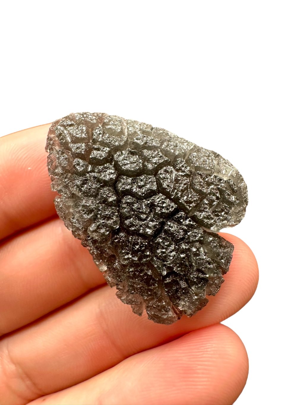 Dieser kürzlich entdeckte Obsidian-Typ gehört zu den schönsten Obsidiangesteinen der Welt. Er unterscheidet sich von anderen Obsidianarten durch seine ausgeprägt tiefe Struktur, die an südböhmische Moldavite erinnert (insbesondere an die Besednice Jezkovna). Seine Skulptur entstand durch schnelles Abkühlen, Aufreißen der Oberfläche und anschließende langsame Einwirkung von Bodensäuren an der jeweiligen Fundstelle – ähnlich wie bei Moldaviten. Die genaue Fundstelle wird derzeit aus Schutzgründen geheim gehalten, um Raubgrabungen und mögliche Zerstörungen der Landschaft zu verhindern. Wir glauben, dass das weltweite Interesse an diesem seltenen und ästhetisch ansprechenden Obsidian rapide zunehmen wird, sobald die genaue Lokalität offengelegt und wissenschaftlich untersucht wird – insbesondere aufgrund seines hohen Potenzials für die Verwendung in der Schmuckindustrie.