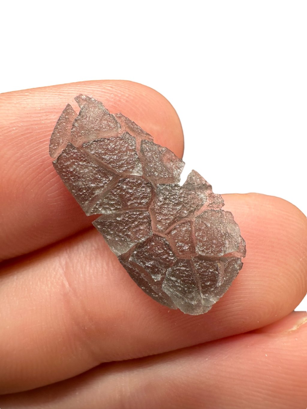 Dieser kürzlich entdeckte Obsidian-Typ gehört zu den schönsten Obsidiangesteinen der Welt. Er unterscheidet sich von anderen Obsidianarten durch seine ausgeprägt tiefe Struktur, die an südböhmische Moldavite erinnert (insbesondere an die Besednice Jezkovna). Seine Skulptur entstand durch schnelles Abkühlen, Aufreißen der Oberfläche und anschließende langsame Einwirkung von Bodensäuren an der jeweiligen Fundstelle – ähnlich wie bei Moldaviten. Die genaue Fundstelle wird derzeit aus Schutzgründen geheim gehalten, um Raubgrabungen und mögliche Zerstörungen der Landschaft zu verhindern. Wir glauben, dass das weltweite Interesse an diesem seltenen und ästhetisch ansprechenden Obsidian rapide zunehmen wird, sobald die genaue Lokalität offengelegt und wissenschaftlich untersucht wird – insbesondere aufgrund seines hohen Potenzials für die Verwendung in der Schmuckindustrie.