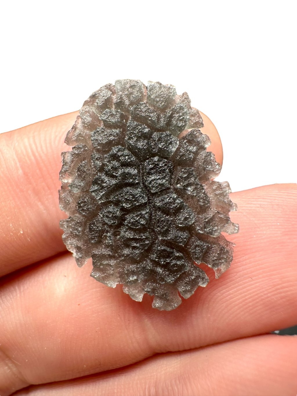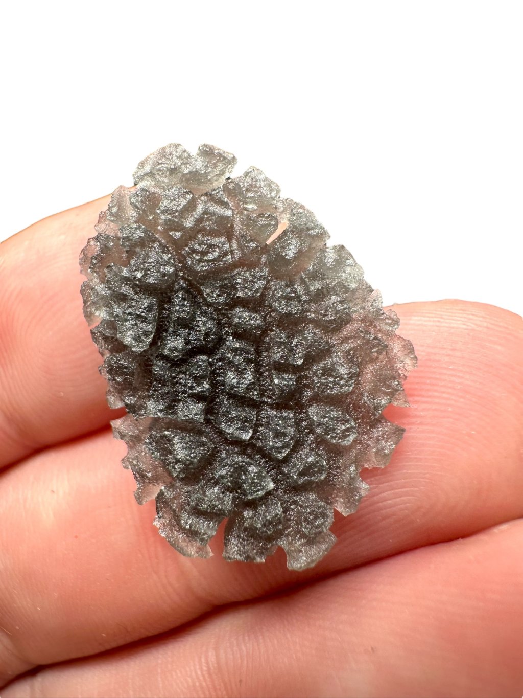 Dieser kürzlich entdeckte Obsidian-Typ gehört zu den schönsten Obsidiangesteinen der Welt. Er unterscheidet sich von anderen Obsidianarten durch seine ausgeprägt tiefe Struktur, die an südböhmische Moldavite erinnert (insbesondere an die Besednice Jezkovna). Seine Skulptur entstand durch schnelles Abkühlen, Aufreißen der Oberfläche und anschließende langsame Einwirkung von Bodensäuren an der jeweiligen Fundstelle – ähnlich wie bei Moldaviten. Die genaue Fundstelle wird derzeit aus Schutzgründen geheim gehalten, um Raubgrabungen und mögliche Zerstörungen der Landschaft zu verhindern. Wir glauben, dass das weltweite Interesse an diesem seltenen und ästhetisch ansprechenden Obsidian rapide zunehmen wird, sobald die genaue Lokalität offengelegt und wissenschaftlich untersucht wird – insbesondere aufgrund seines hohen Potenzials für die Verwendung in der Schmuckindustrie.