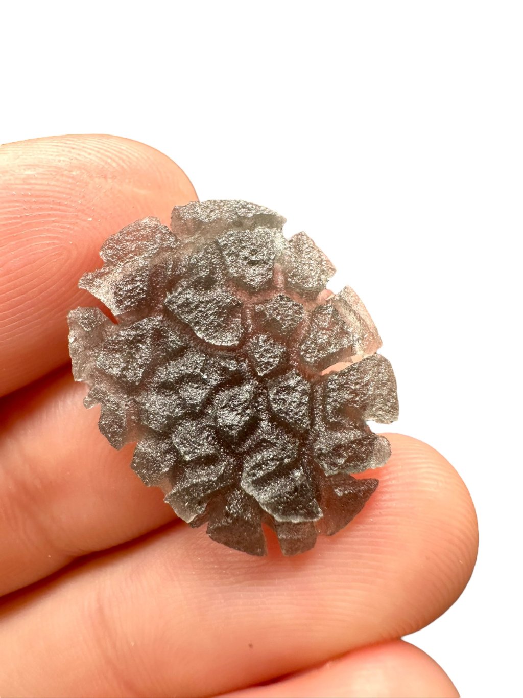 Dieser kürzlich entdeckte Obsidian-Typ gehört zu den schönsten Obsidiangesteinen der Welt. Er unterscheidet sich von anderen Obsidianarten durch seine ausgeprägt tiefe Struktur, die an südböhmische Moldavite erinnert (insbesondere an die Besednice Jezkovna). Seine Skulptur entstand durch schnelles Abkühlen, Aufreißen der Oberfläche und anschließende langsame Einwirkung von Bodensäuren an der jeweiligen Fundstelle – ähnlich wie bei Moldaviten. Die genaue Fundstelle wird derzeit aus Schutzgründen geheim gehalten, um Raubgrabungen und mögliche Zerstörungen der Landschaft zu verhindern. Wir glauben, dass das weltweite Interesse an diesem seltenen und ästhetisch ansprechenden Obsidian rapide zunehmen wird, sobald die genaue Lokalität offengelegt und wissenschaftlich untersucht wird – insbesondere aufgrund seines hohen Potenzials für die Verwendung in der Schmuckindustrie.