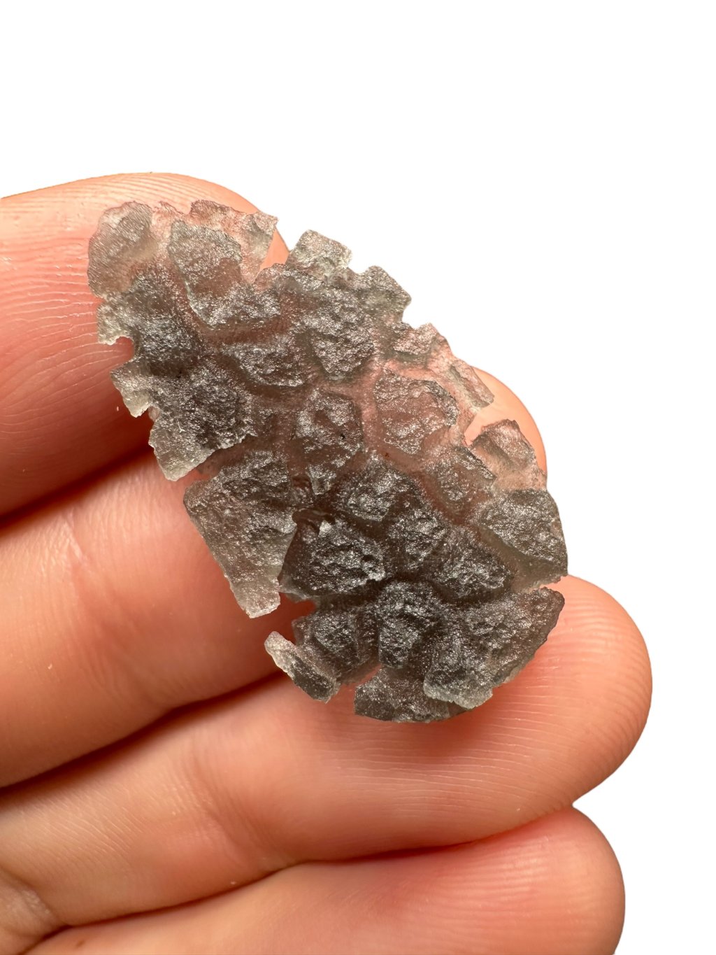 Dieser kürzlich entdeckte Obsidian-Typ gehört zu den schönsten Obsidiangesteinen der Welt. Er unterscheidet sich von anderen Obsidianarten durch seine ausgeprägt tiefe Struktur, die an südböhmische Moldavite erinnert (insbesondere an die Besednice Jezkovna). Seine Skulptur entstand durch schnelles Abkühlen, Aufreißen der Oberfläche und anschließende langsame Einwirkung von Bodensäuren an der jeweiligen Fundstelle – ähnlich wie bei Moldaviten. Die genaue Fundstelle wird derzeit aus Schutzgründen geheim gehalten, um Raubgrabungen und mögliche Zerstörungen der Landschaft zu verhindern. Wir glauben, dass das weltweite Interesse an diesem seltenen und ästhetisch ansprechenden Obsidian rapide zunehmen wird, sobald die genaue Lokalität offengelegt und wissenschaftlich untersucht wird – insbesondere aufgrund seines hohen Potenzials für die Verwendung in der Schmuckindustrie.