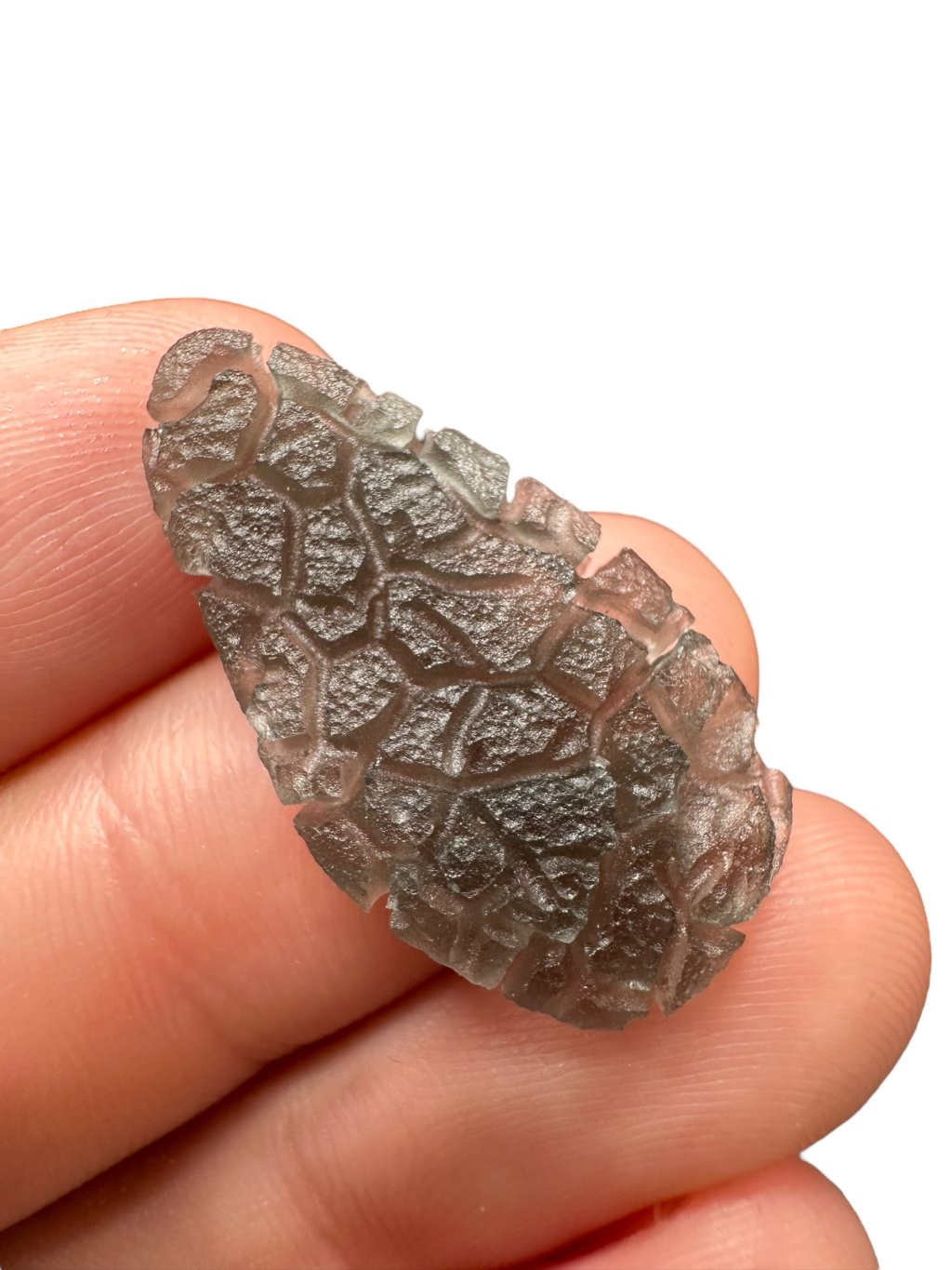 Dieser kürzlich entdeckte Obsidian-Typ gehört zu den schönsten Obsidiangesteinen der Welt. Er unterscheidet sich von anderen Obsidianarten durch seine ausgeprägt tiefe Struktur, die an südböhmische Moldavite erinnert (insbesondere an die Besednice Jezkovna). Seine Skulptur entstand durch schnelles Abkühlen, Aufreißen der Oberfläche und anschließende langsame Einwirkung von Bodensäuren an der jeweiligen Fundstelle – ähnlich wie bei Moldaviten. Die genaue Fundstelle wird derzeit aus Schutzgründen geheim gehalten, um Raubgrabungen und mögliche Zerstörungen der Landschaft zu verhindern. Wir glauben, dass das weltweite Interesse an diesem seltenen und ästhetisch ansprechenden Obsidian rapide zunehmen wird, sobald die genaue Lokalität offengelegt und wissenschaftlich untersucht wird – insbesondere aufgrund seines hohen Potenzials für die Verwendung in der Schmuckindustrie.