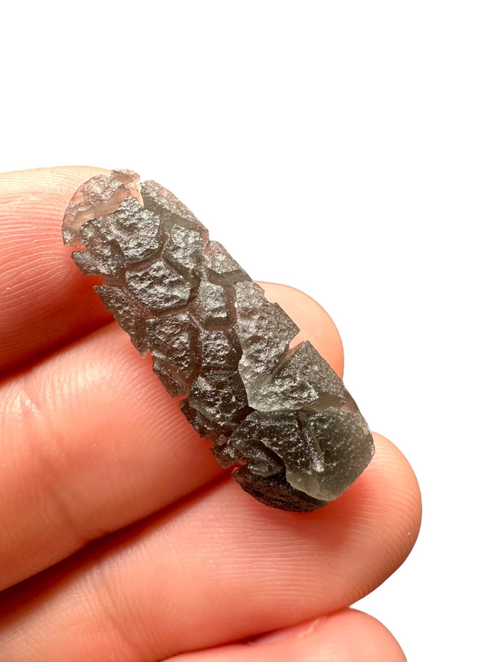 Dieser kürzlich entdeckte Obsidian-Typ gehört zu den schönsten Obsidiangesteinen der Welt. Er unterscheidet sich von anderen Obsidianarten durch seine ausgeprägt tiefe Struktur, die an südböhmische Moldavite erinnert (insbesondere an die Besednice Jezkovna). Seine Skulptur entstand durch schnelles Abkühlen, Aufreißen der Oberfläche und anschließende langsame Einwirkung von Bodensäuren an der jeweiligen Fundstelle – ähnlich wie bei Moldaviten. Die genaue Fundstelle wird derzeit aus Schutzgründen geheim gehalten, um Raubgrabungen und mögliche Zerstörungen der Landschaft zu verhindern. Wir glauben, dass das weltweite Interesse an diesem seltenen und ästhetisch ansprechenden Obsidian rapide zunehmen wird, sobald die genaue Lokalität offengelegt und wissenschaftlich untersucht wird – insbesondere aufgrund seines hohen Potenzials für die Verwendung in der Schmuckindustrie.