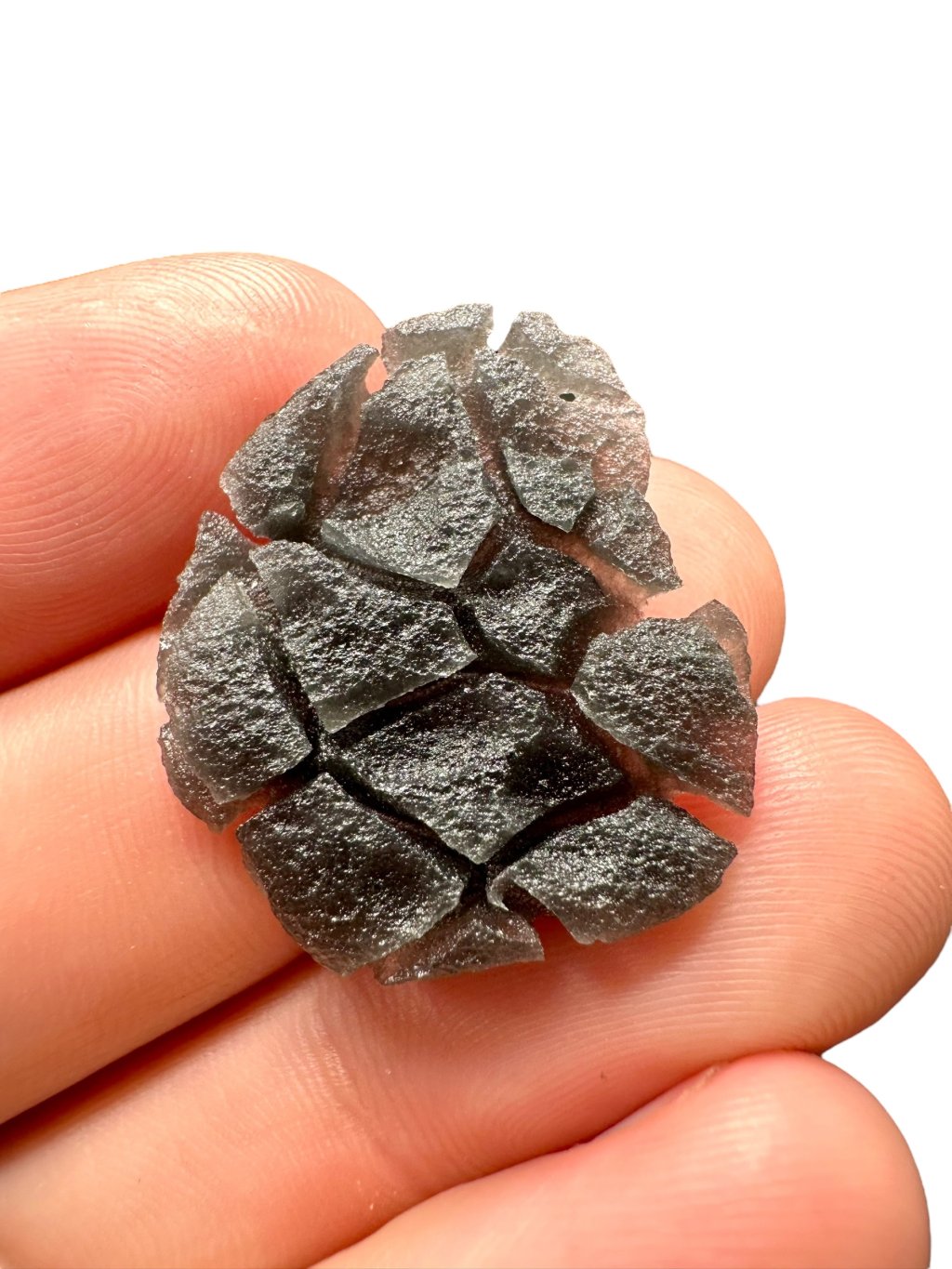 Dieser kürzlich entdeckte Obsidian-Typ gehört zu den schönsten Obsidiangesteinen der Welt. Er unterscheidet sich von anderen Obsidianarten durch seine ausgeprägt tiefe Struktur, die an südböhmische Moldavite erinnert (insbesondere an die Besednice Jezkovna). Seine Skulptur entstand durch schnelles Abkühlen, Aufreißen der Oberfläche und anschließende langsame Einwirkung von Bodensäuren an der jeweiligen Fundstelle – ähnlich wie bei Moldaviten. Die genaue Fundstelle wird derzeit aus Schutzgründen geheim gehalten, um Raubgrabungen und mögliche Zerstörungen der Landschaft zu verhindern. Wir glauben, dass das weltweite Interesse an diesem seltenen und ästhetisch ansprechenden Obsidian rapide zunehmen wird, sobald die genaue Lokalität offengelegt und wissenschaftlich untersucht wird – insbesondere aufgrund seines hohen Potenzials für die Verwendung in der Schmuckindustrie.