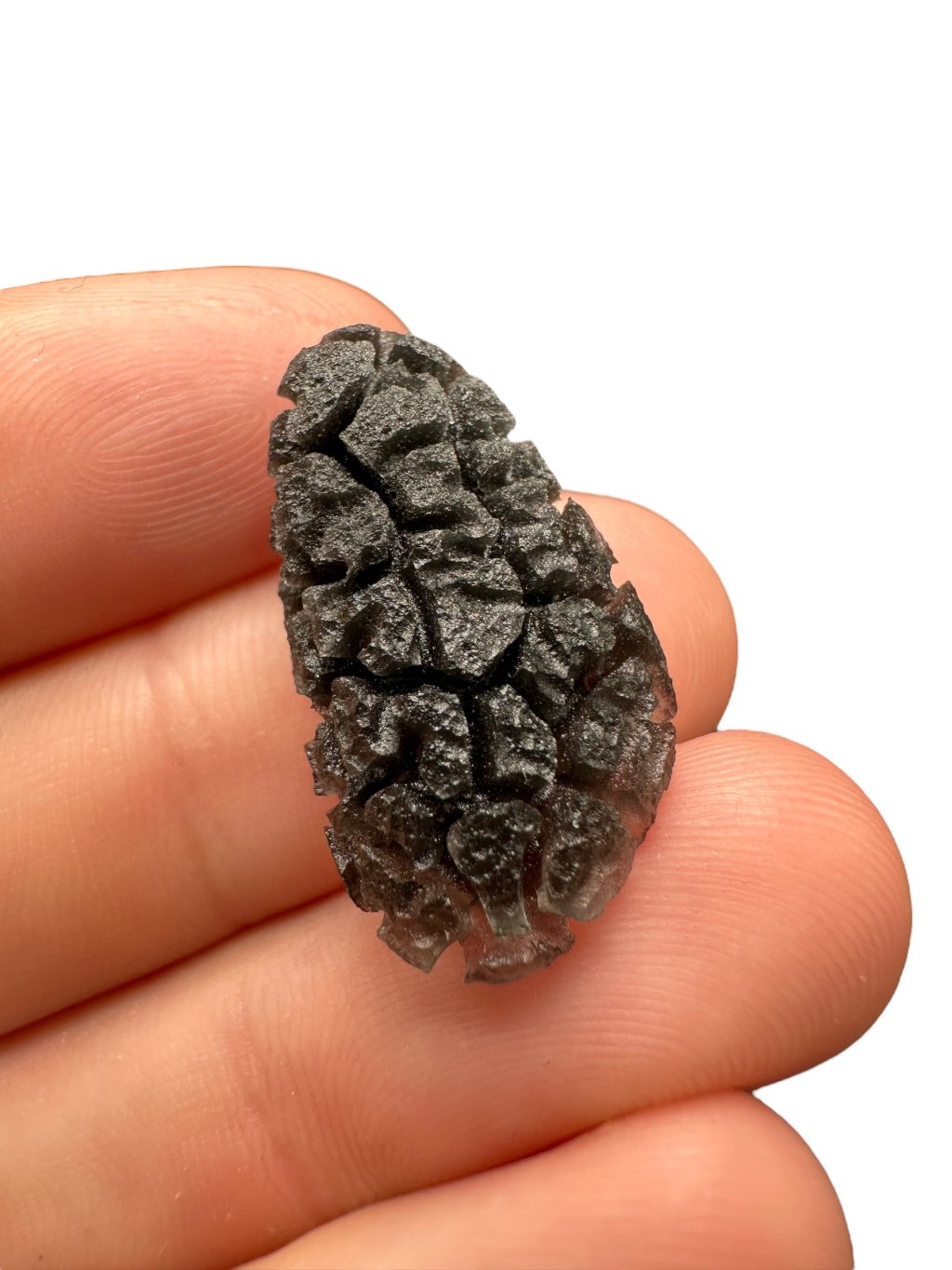 Dieser kürzlich entdeckte Obsidian-Typ gehört zu den schönsten Obsidiangesteinen der Welt. Er unterscheidet sich von anderen Obsidianarten durch seine ausgeprägt tiefe Struktur, die an südböhmische Moldavite erinnert (insbesondere an die Besednice Jezkovna). Seine Skulptur entstand durch schnelles Abkühlen, Aufreißen der Oberfläche und anschließende langsame Einwirkung von Bodensäuren an der jeweiligen Fundstelle – ähnlich wie bei Moldaviten. Die genaue Fundstelle wird derzeit aus Schutzgründen geheim gehalten, um Raubgrabungen und mögliche Zerstörungen der Landschaft zu verhindern. Wir glauben, dass das weltweite Interesse an diesem seltenen und ästhetisch ansprechenden Obsidian rapide zunehmen wird, sobald die genaue Lokalität offengelegt und wissenschaftlich untersucht wird – insbesondere aufgrund seines hohen Potenzials für die Verwendung in der Schmuckindustrie.