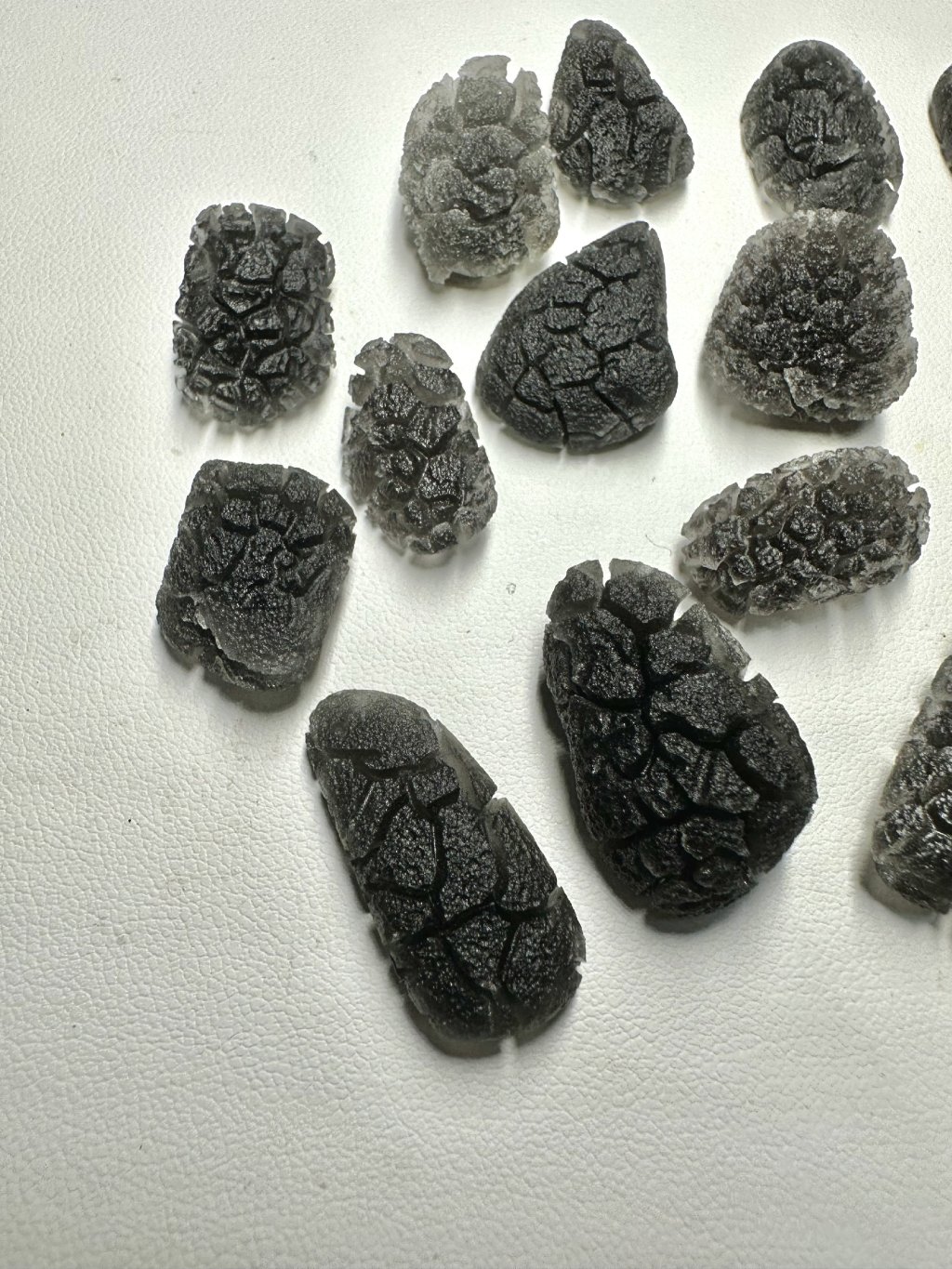 Dieser kürzlich entdeckte Obsidian-Typ gehört zu den schönsten Obsidiangesteinen der Welt. Er unterscheidet sich von anderen Obsidianarten durch seine ausgeprägt tiefe Struktur, die an südböhmische Moldavite erinnert (insbesondere an die Besednice Jezkovna). Seine Skulptur entstand durch schnelles Abkühlen, Aufreißen der Oberfläche und anschließende langsame Einwirkung von Bodensäuren an der jeweiligen Fundstelle – ähnlich wie bei Moldaviten. Die genaue Fundstelle wird derzeit aus Schutzgründen geheim gehalten, um Raubgrabungen und mögliche Zerstörungen der Landschaft zu verhindern. Wir glauben, dass das weltweite Interesse an diesem seltenen und ästhetisch ansprechenden Obsidian rapide zunehmen wird, sobald die genaue Lokalität offengelegt und wissenschaftlich untersucht wird – insbesondere aufgrund seines hohen Potenzials für die Verwendung in der Schmuckindustrie.