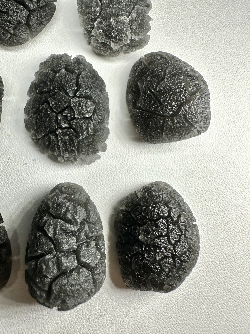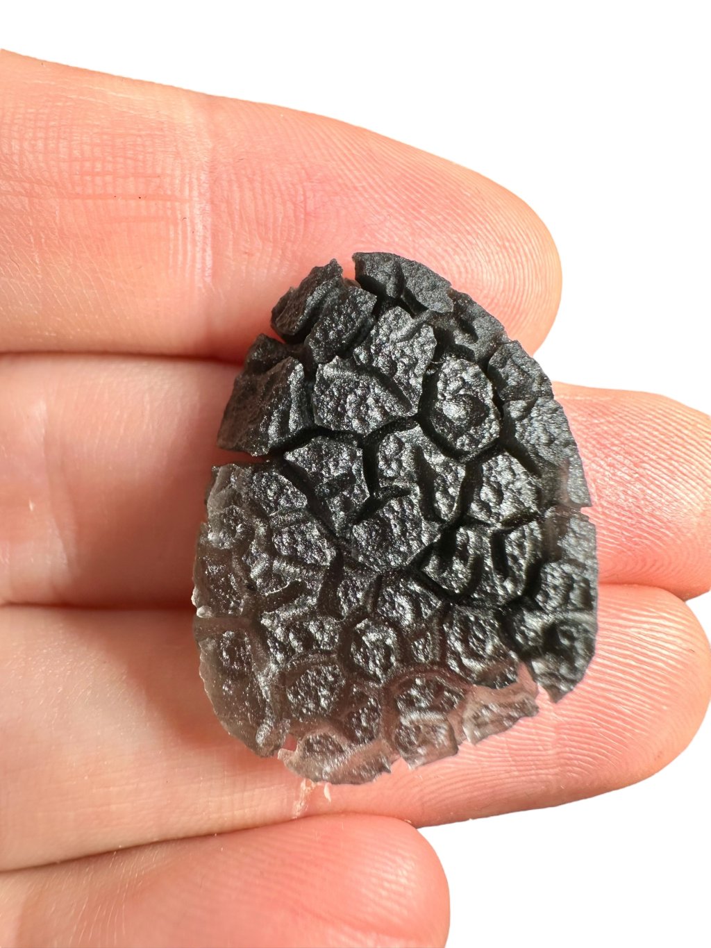 Dieser kürzlich entdeckte Obsidian-Typ gehört zu den schönsten Obsidiangesteinen der Welt. Er unterscheidet sich von anderen Obsidianarten durch seine ausgeprägt tiefe Struktur, die an südböhmische Moldavite erinnert (insbesondere an die Besednice Jezkovna). Seine Skulptur entstand durch schnelles Abkühlen, Aufreißen der Oberfläche und anschließende langsame Einwirkung von Bodensäuren an der jeweiligen Fundstelle – ähnlich wie bei Moldaviten. Die genaue Fundstelle wird derzeit aus Schutzgründen geheim gehalten, um Raubgrabungen und mögliche Zerstörungen der Landschaft zu verhindern. Wir glauben, dass das weltweite Interesse an diesem seltenen und ästhetisch ansprechenden Obsidian rapide zunehmen wird, sobald die genaue Lokalität offengelegt und wissenschaftlich untersucht wird – insbesondere aufgrund seines hohen Potenzials für die Verwendung in der Schmuckindustrie.