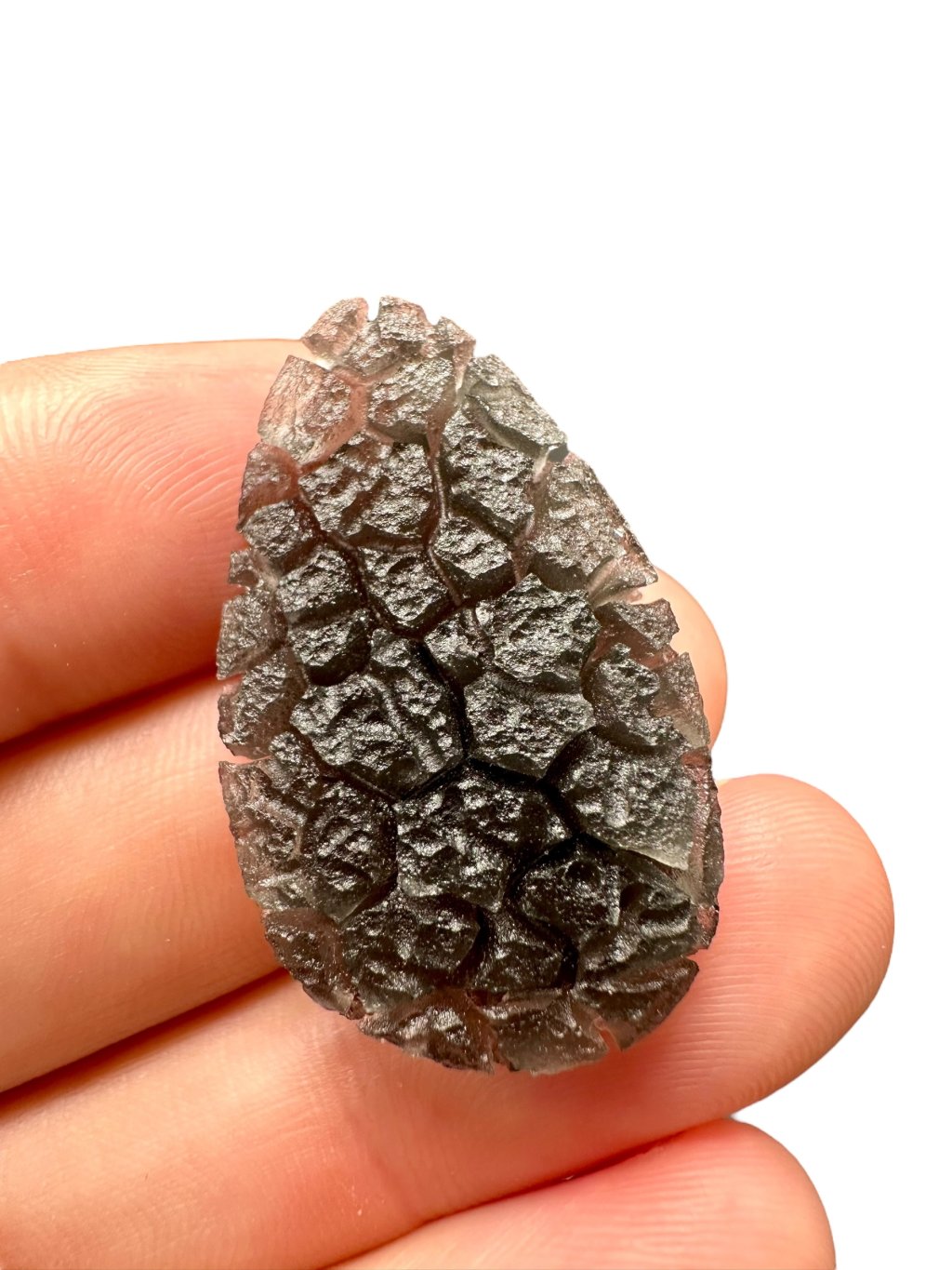 Dieser kürzlich entdeckte Obsidian-Typ gehört zu den schönsten Obsidiangesteinen der Welt. Er unterscheidet sich von anderen Obsidianarten durch seine ausgeprägt tiefe Struktur, die an südböhmische Moldavite erinnert (insbesondere an die Besednice Jezkovna). Seine Skulptur entstand durch schnelles Abkühlen, Aufreißen der Oberfläche und anschließende langsame Einwirkung von Bodensäuren an der jeweiligen Fundstelle – ähnlich wie bei Moldaviten. Die genaue Fundstelle wird derzeit aus Schutzgründen geheim gehalten, um Raubgrabungen und mögliche Zerstörungen der Landschaft zu verhindern. Wir glauben, dass das weltweite Interesse an diesem seltenen und ästhetisch ansprechenden Obsidian rapide zunehmen wird, sobald die genaue Lokalität offengelegt und wissenschaftlich untersucht wird – insbesondere aufgrund seines hohen Potenzials für die Verwendung in der Schmuckindustrie.
