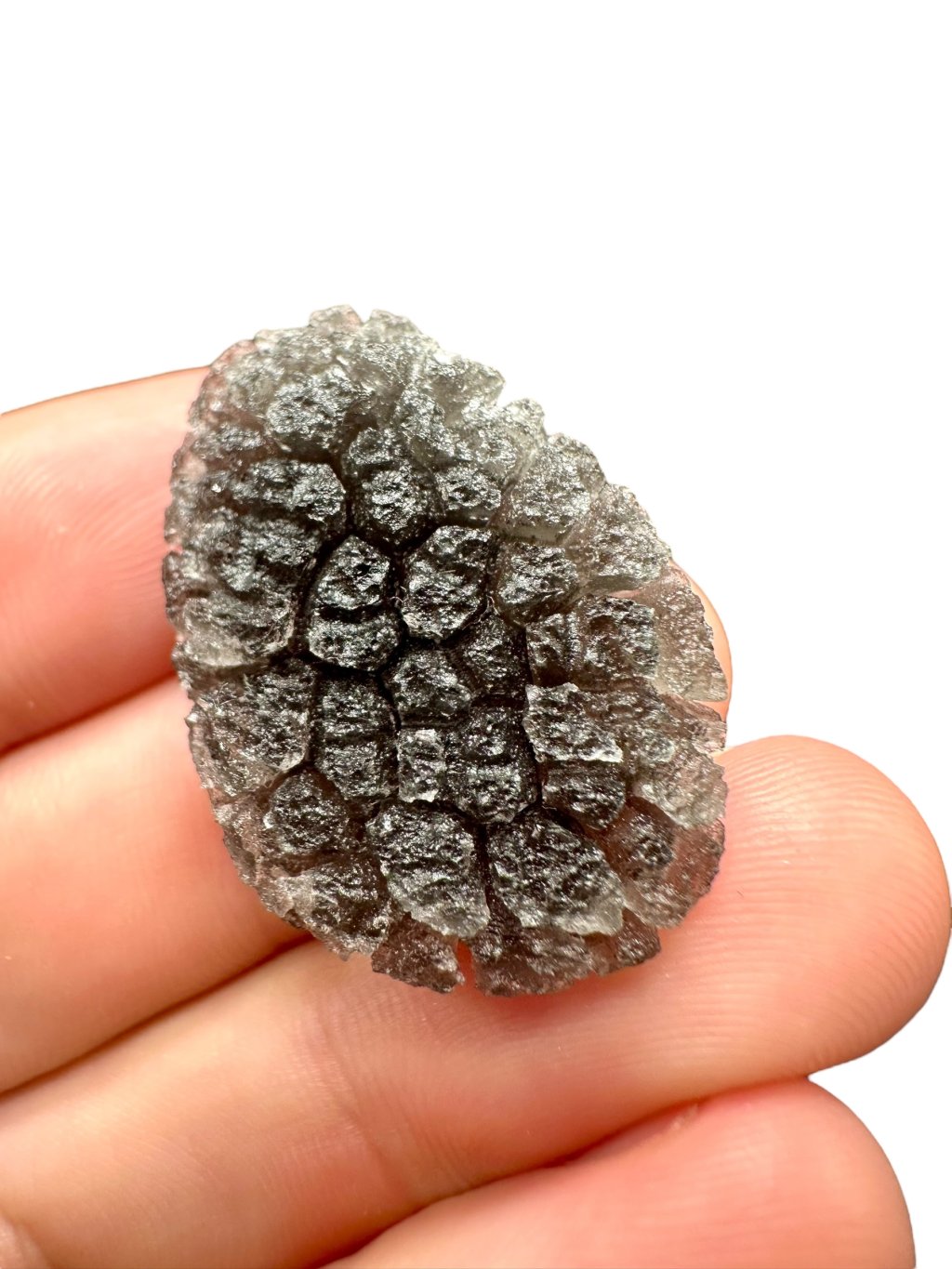 Dieser kürzlich entdeckte Obsidian-Typ gehört zu den schönsten Obsidiangesteinen der Welt. Er unterscheidet sich von anderen Obsidianarten durch seine ausgeprägt tiefe Struktur, die an südböhmische Moldavite erinnert (insbesondere an die Besednice Jezkovna). Seine Skulptur entstand durch schnelles Abkühlen, Aufreißen der Oberfläche und anschließende langsame Einwirkung von Bodensäuren an der jeweiligen Fundstelle – ähnlich wie bei Moldaviten. Die genaue Fundstelle wird derzeit aus Schutzgründen geheim gehalten, um Raubgrabungen und mögliche Zerstörungen der Landschaft zu verhindern. Wir glauben, dass das weltweite Interesse an diesem seltenen und ästhetisch ansprechenden Obsidian rapide zunehmen wird, sobald die genaue Lokalität offengelegt und wissenschaftlich untersucht wird – insbesondere aufgrund seines hohen Potenzials für die Verwendung in der Schmuckindustrie.