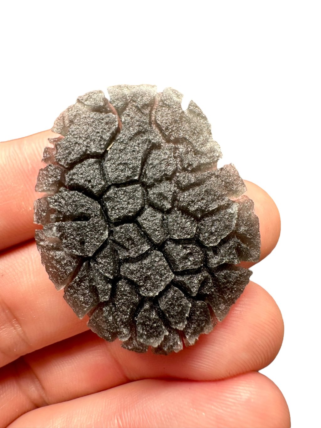 Dieser kürzlich entdeckte Obsidian-Typ gehört zu den schönsten Obsidiangesteinen der Welt. Er unterscheidet sich von anderen Obsidianarten durch seine ausgeprägt tiefe Struktur, die an südböhmische Moldavite erinnert (insbesondere an die Besednice Jezkovna). Seine Skulptur entstand durch schnelles Abkühlen, Aufreißen der Oberfläche und anschließende langsame Einwirkung von Bodensäuren an der jeweiligen Fundstelle – ähnlich wie bei Moldaviten. Die genaue Fundstelle wird derzeit aus Schutzgründen geheim gehalten, um Raubgrabungen und mögliche Zerstörungen der Landschaft zu verhindern. Wir glauben, dass das weltweite Interesse an diesem seltenen und ästhetisch ansprechenden Obsidian rapide zunehmen wird, sobald die genaue Lokalität offengelegt und wissenschaftlich untersucht wird – insbesondere aufgrund seines hohen Potenzials für die Verwendung in der Schmuckindustrie.