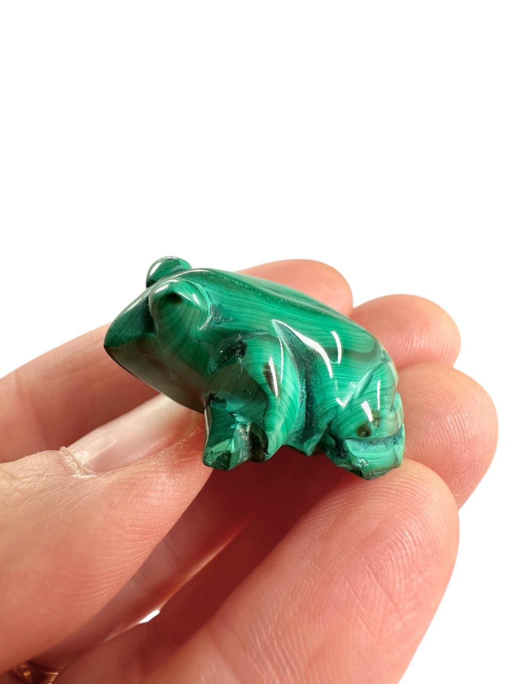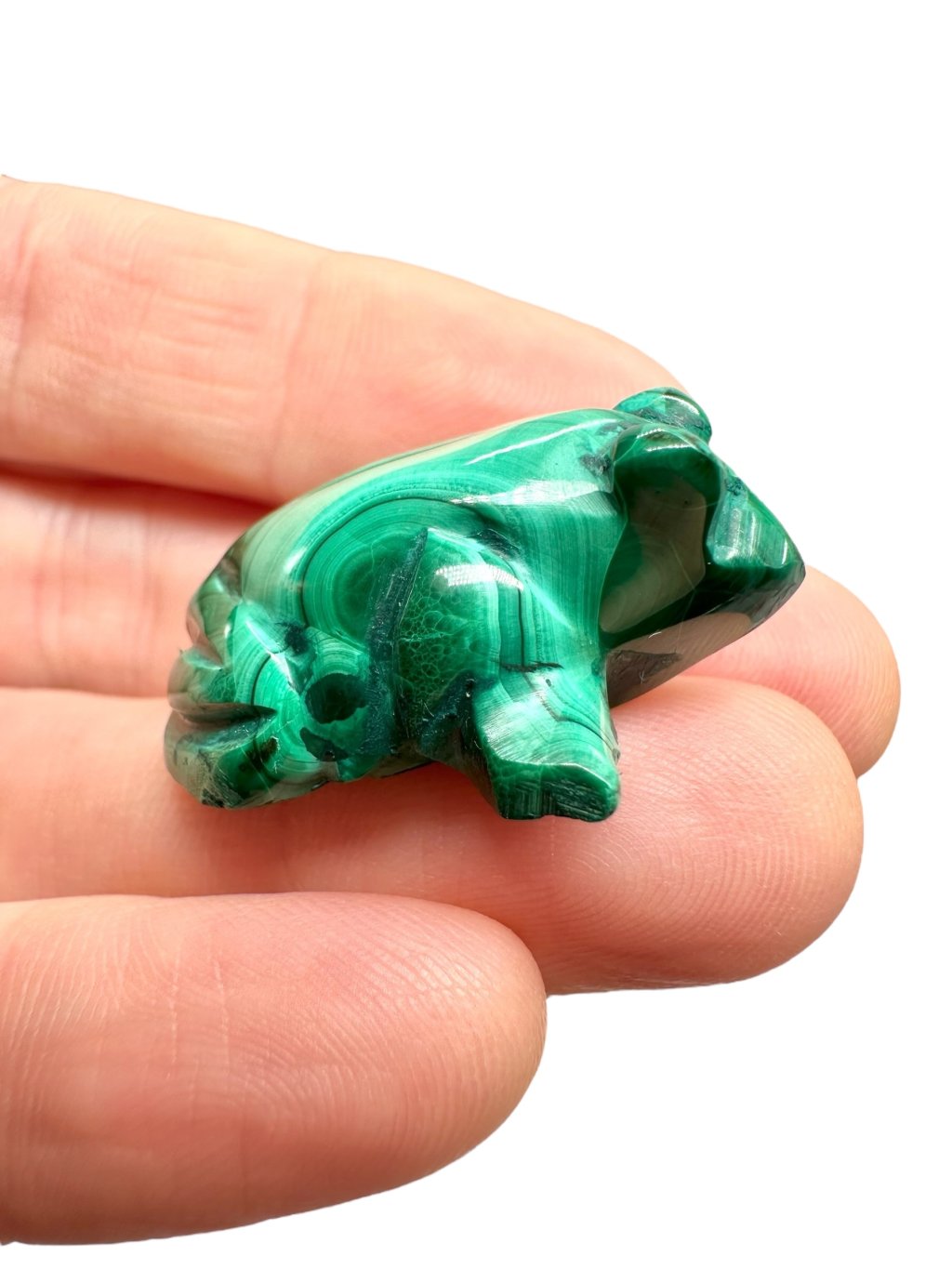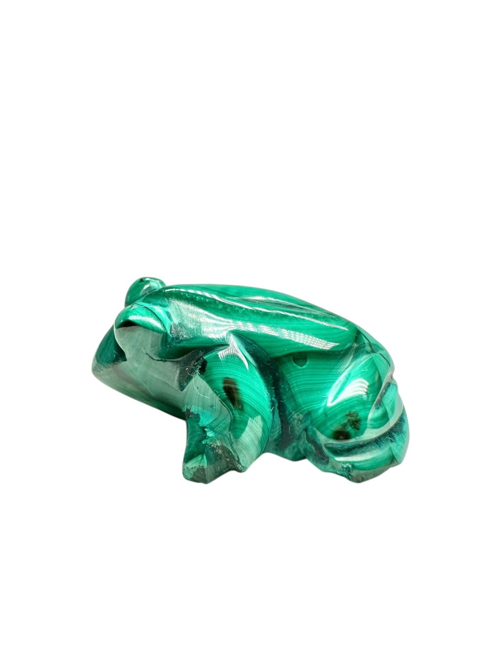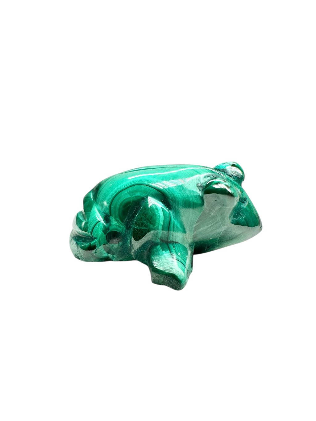 Das Malachittier ist ein dekoratives Objekt aus Malachit, das für seine tiefgrüne Farbe und sein Streifenmuster bekannt ist. Die natürliche Schönheit und Textur von Malachit machen diese Tiere zu beliebten Dekorations- und Sammlerstücken. Sie werden oft in Handarbeit hergestellt, wobei die Kunsthandwerker verschiedene Schattierungen und Streifen des Minerals verwenden, um jedem Tier ein einzigartiges Aussehen zu verleihen.