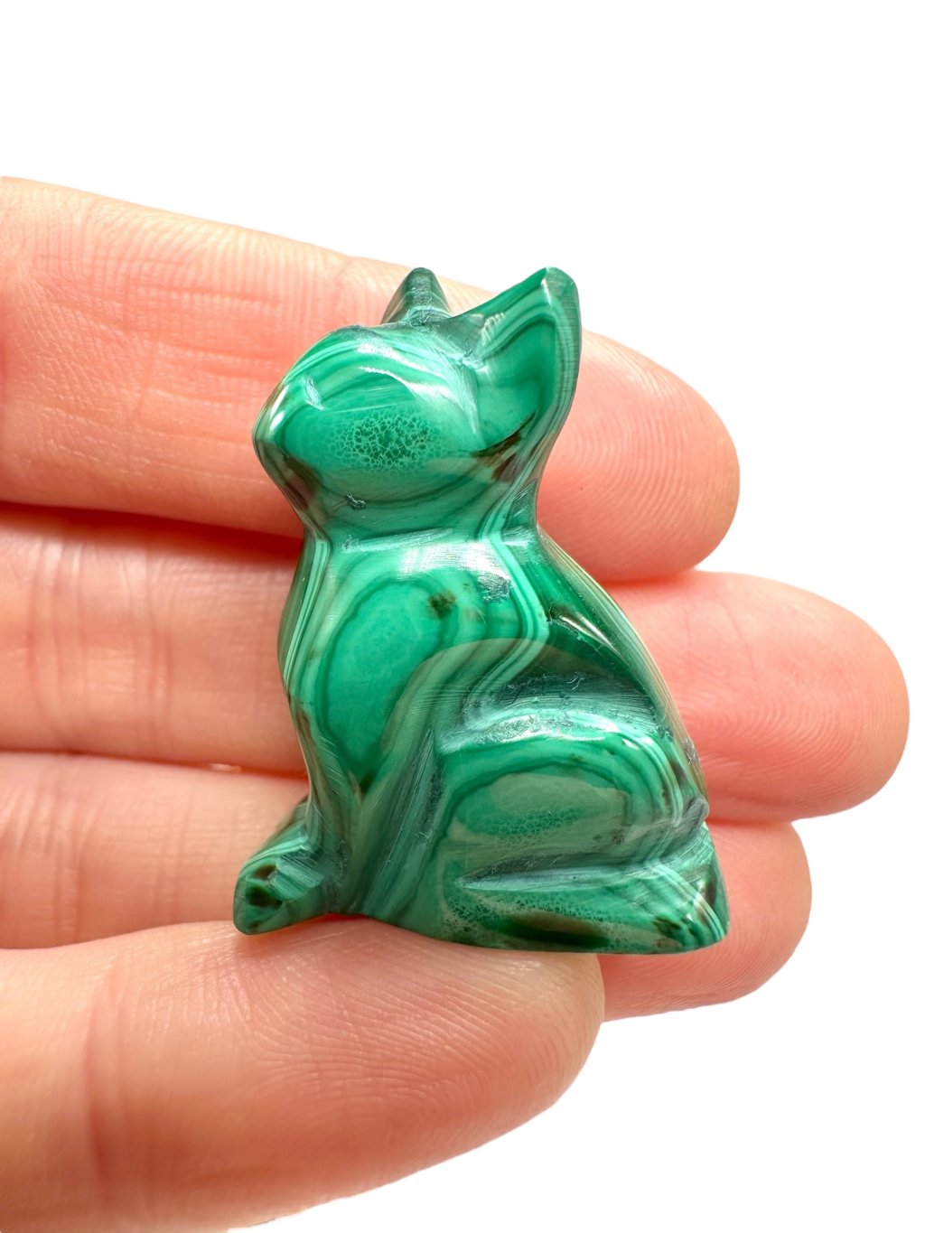 Das Malachittier ist ein dekoratives Objekt aus Malachit, das für seine tiefgrüne Farbe und sein Streifenmuster bekannt ist. Die natürliche Schönheit und Textur von Malachit machen diese Tiere zu beliebten Dekorations- und Sammlerstücken. Sie werden oft in Handarbeit hergestellt, wobei die Kunsthandwerker verschiedene Schattierungen und Streifen des Minerals verwenden, um jedem Tier ein einzigartiges Aussehen zu verleihen.