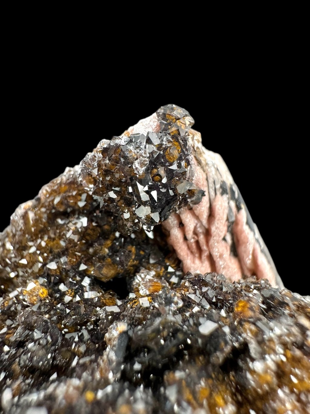 Pyrolusit ist das häufigste Manganerz. Er zeichnet sich durch seine tiefschwarze bis dunkelgraue Farbe, seinen metallischen Glanz und eine Härte von 6–6,5 aus. Er bildet oft feine faserige bis säulenförmige Kristalle oder glänzende Krusten mit starkem metallischem Glanz, was ihn zu einem optisch ansprechenden Mineral macht.