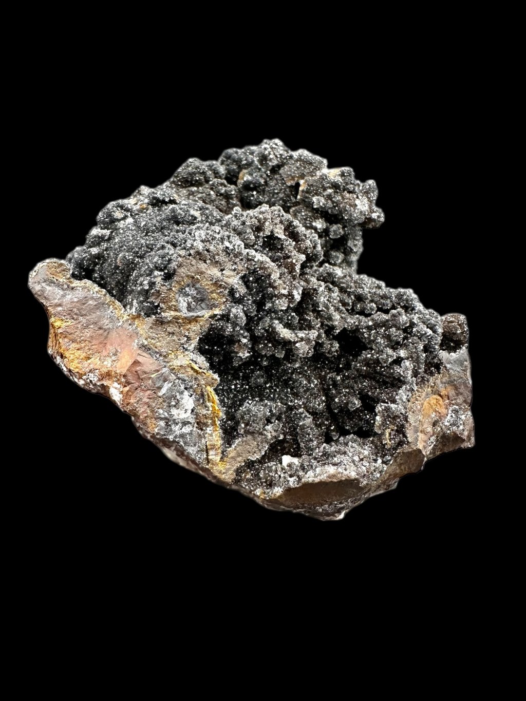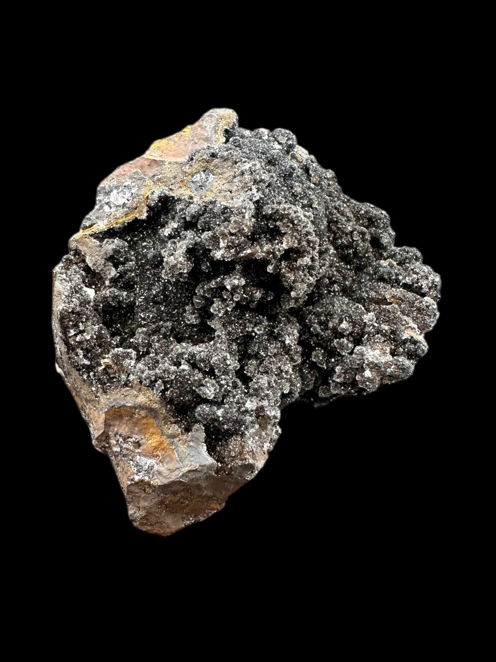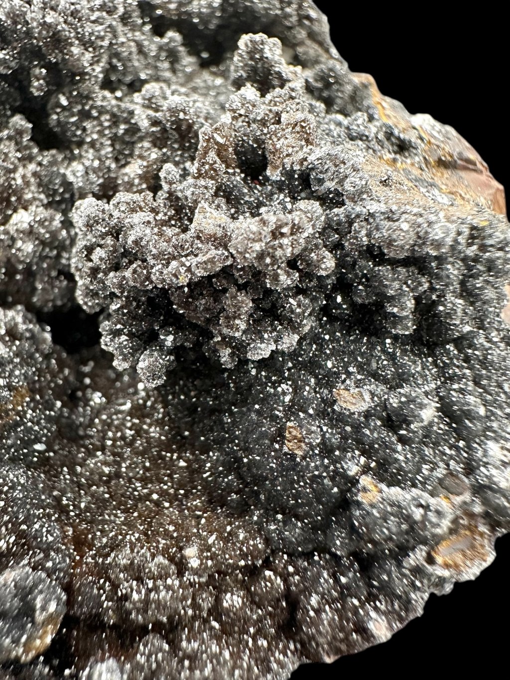 Pyrolusit ist das häufigste Manganerz. Er zeichnet sich durch seine tiefschwarze bis dunkelgraue Farbe, seinen metallischen Glanz und eine Härte von 6–6,5 aus. Er bildet oft feine faserige bis säulenförmige Kristalle oder glänzende Krusten mit starkem metallischem Glanz, was ihn zu einem optisch ansprechenden Mineral macht.