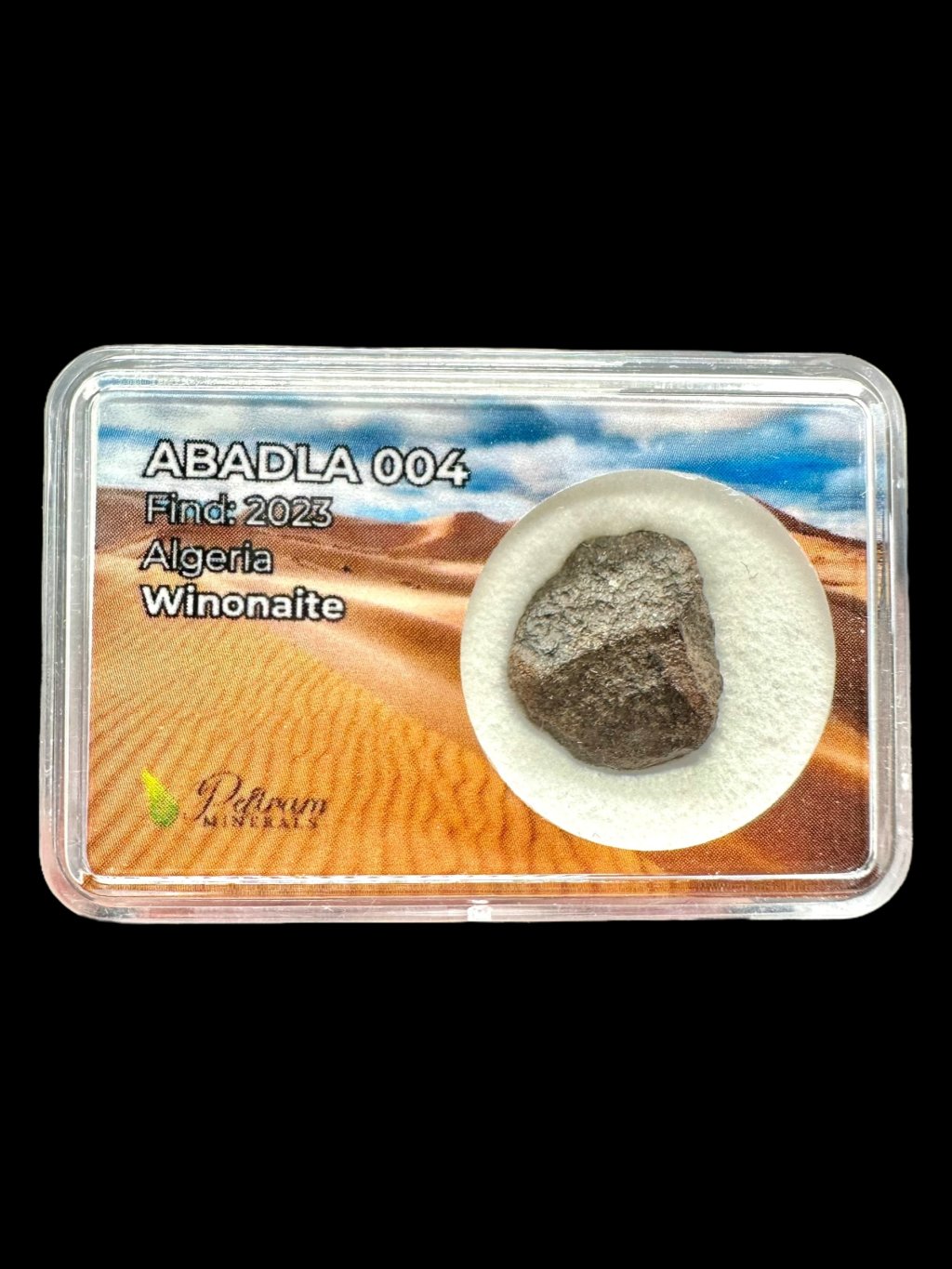 Abadla 004, im Jahr 2023 in der Nähe der Stadt Bechar in Algerien entdeckt, gehört zur seltenen Kategorie der primitiven Achondrite, speziell zur Gruppe der Winonaiten. Die Zusammensetzung ähnelt Chondriten, insbesondere H- und E-Typen. Diese Meteoriten zeigen Anzeichen von Metamorphose, teilweiser Schmelze, Brekziation und enthalten oft reliktische Chondren, was typisch für ihre chemische und mineralogische Zusammensetzung ist, die zwischen H- und E-Chondriten liegt.